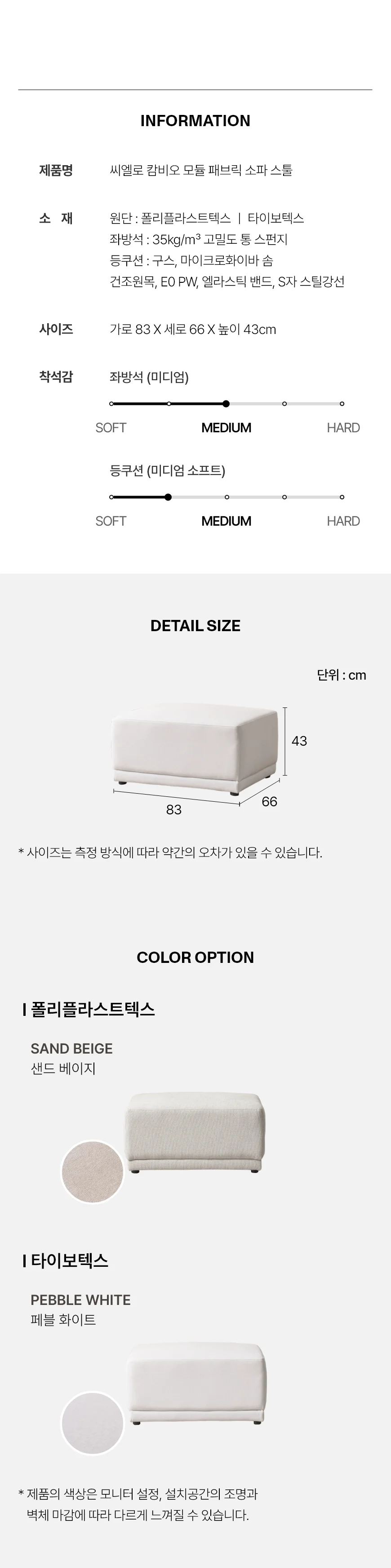 (한샘몰pick) 캄비오 모듈 아쿠아텍스 패브릭 소파 스툴(2종/택1)