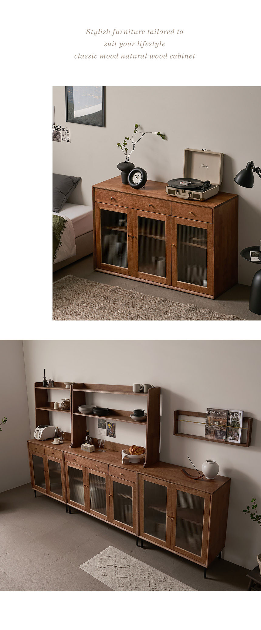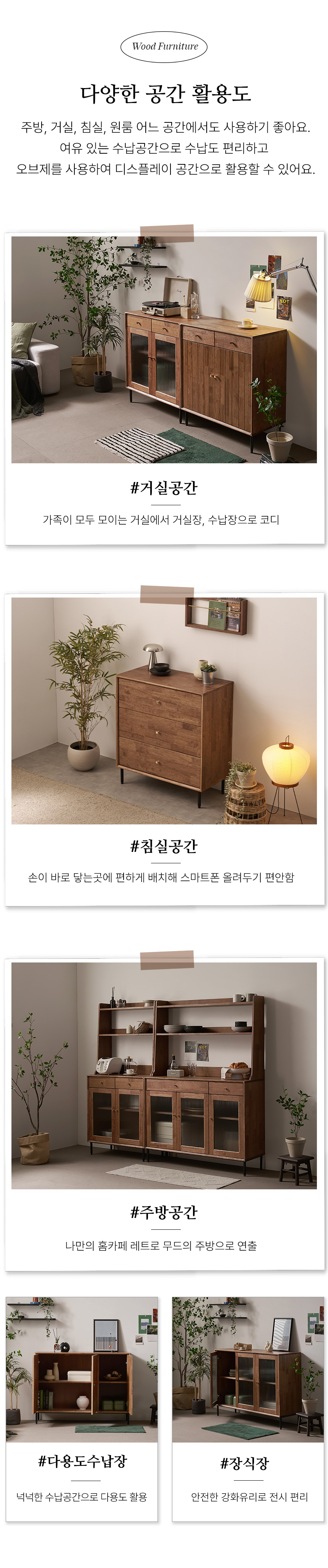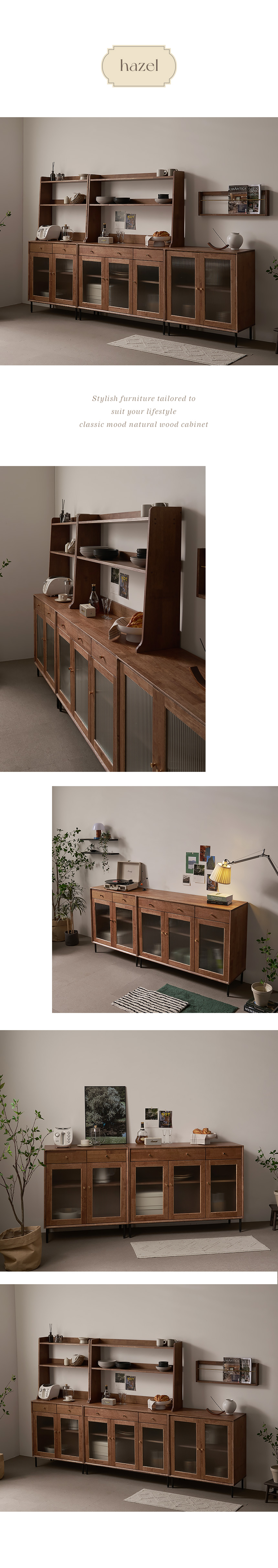 헤이즐 2000 원목 그릇장 강화 모루유리 장식장 주방 서랍 수납장 세트 GM411C