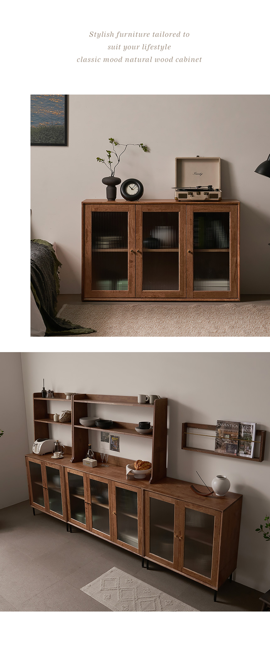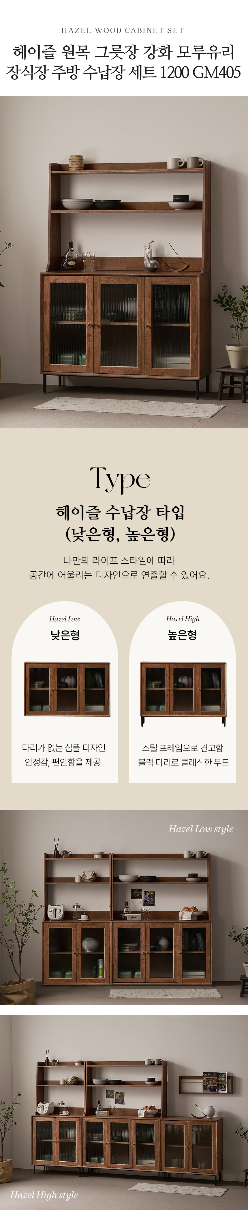 헤이즐 원목 그릇장 강화 모루유리 장식장 주방 수납장 세트 1200 GM405C