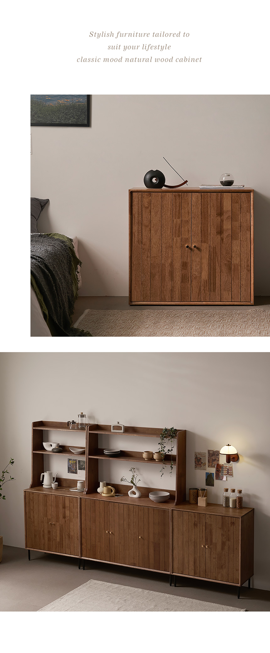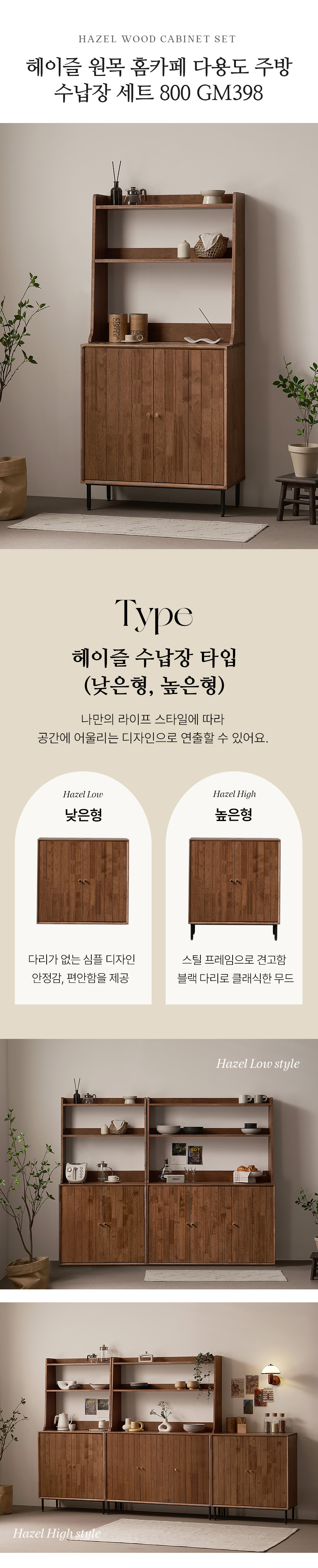 헤이즐 원목 홈카페 다용도 주방 수납장 세트 800 GM398C