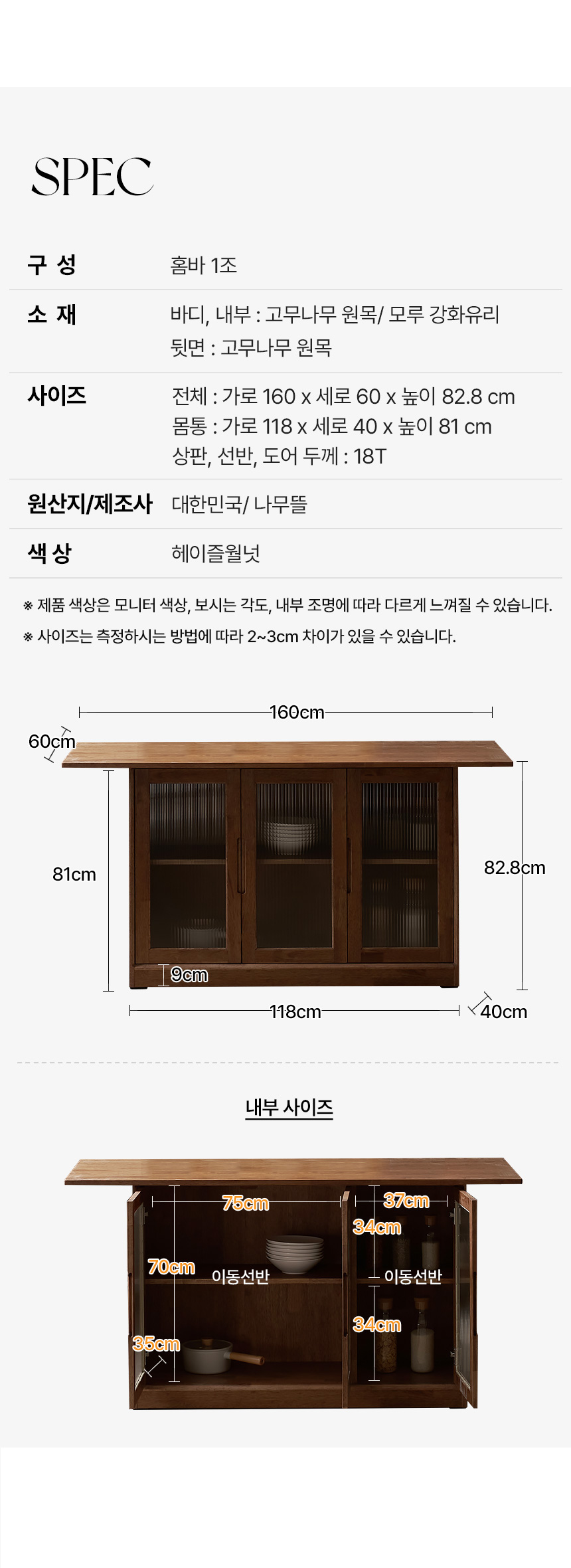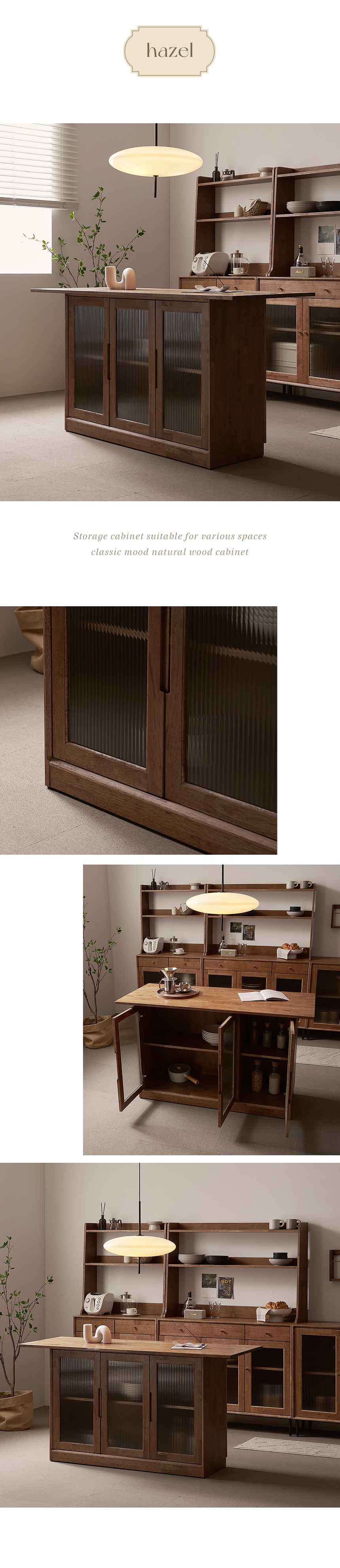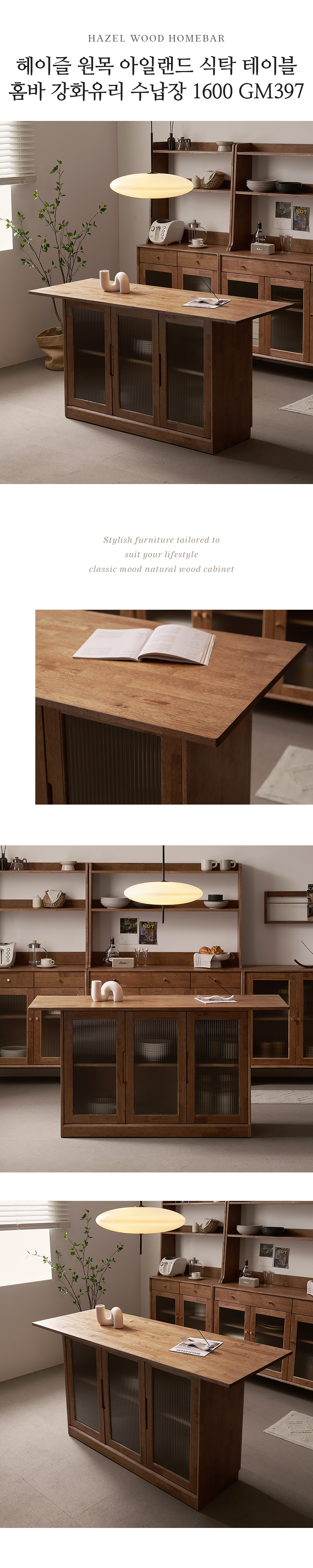 헤이즐 원목 아일랜드 식탁 테이블 홈바 강화유리 수납장 1600 GM397C
