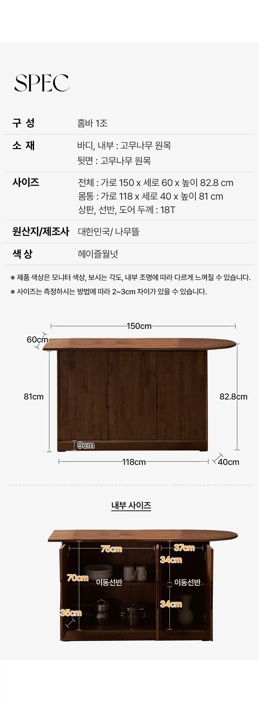 헤이즐 원목 아일랜드 식탁 테이블 홈바 수납장 1500 GM393C