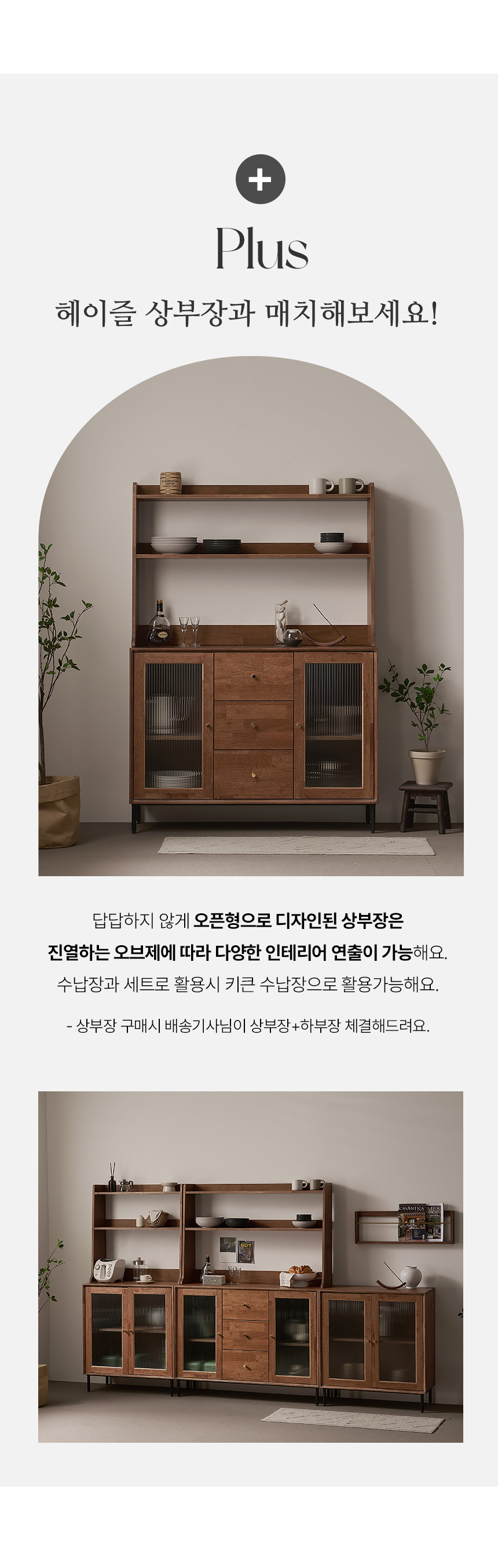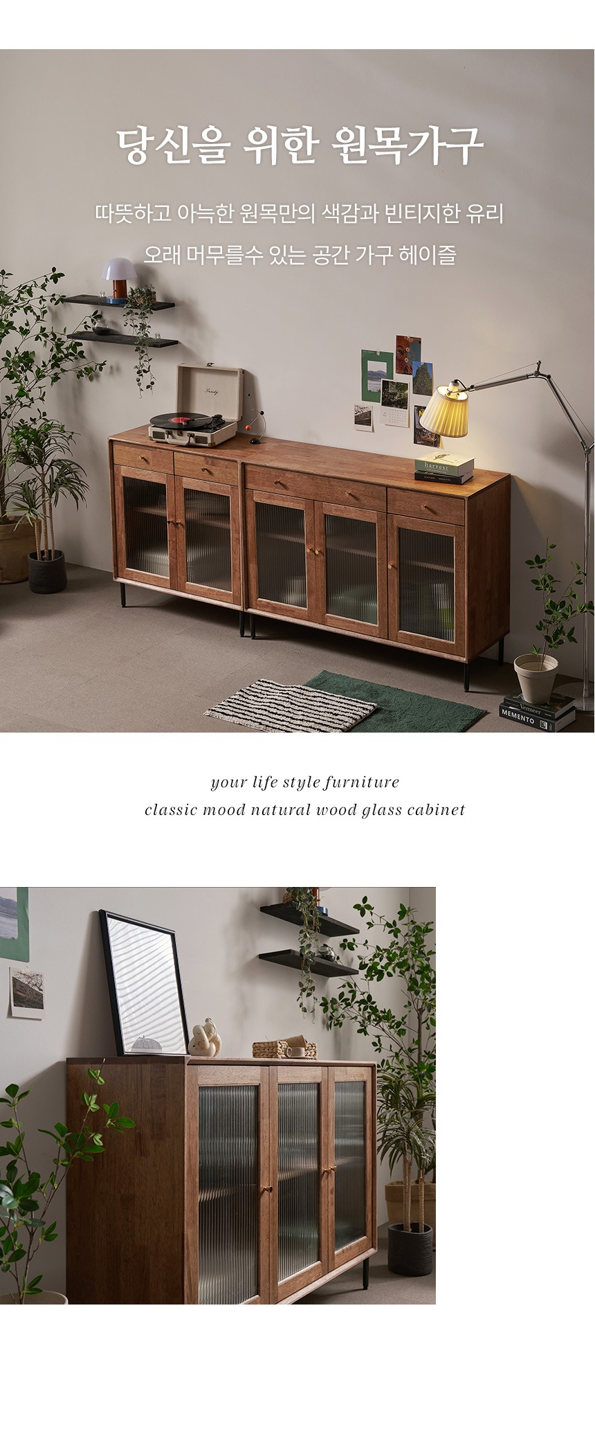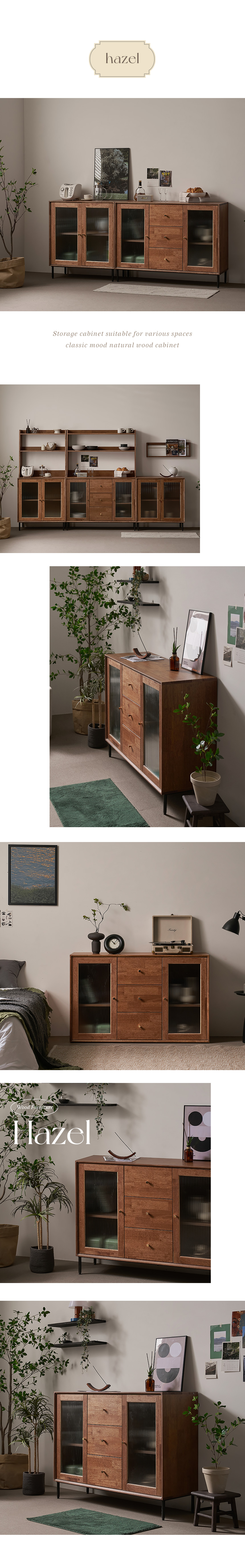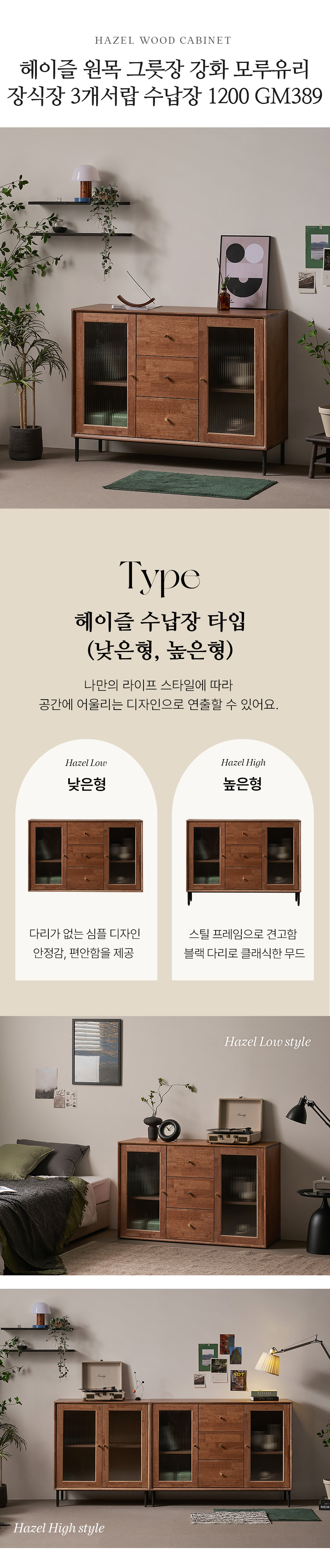 헤이즐 원목 그릇장 강화 모루유리 장식장 3개서랍 수납장 1200 GM389C