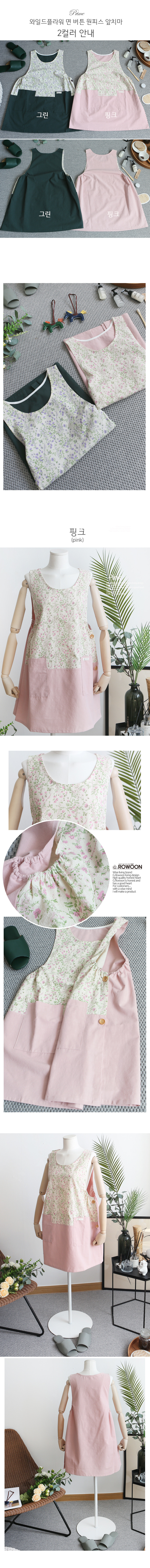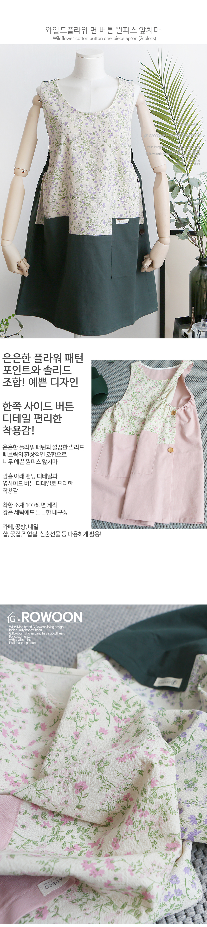 [ 은은한 플라워 패턴 / 옆라인 버튼 마감 / 원피스 디자인 / 편리한 활동성 / 착한소재 면 패브릭 제작 / free 사이즈 / 가볍고 편안한 착용감 / 카페 공방 주방 바리스타 신혼집 선물 인테리어 앞치마 ]