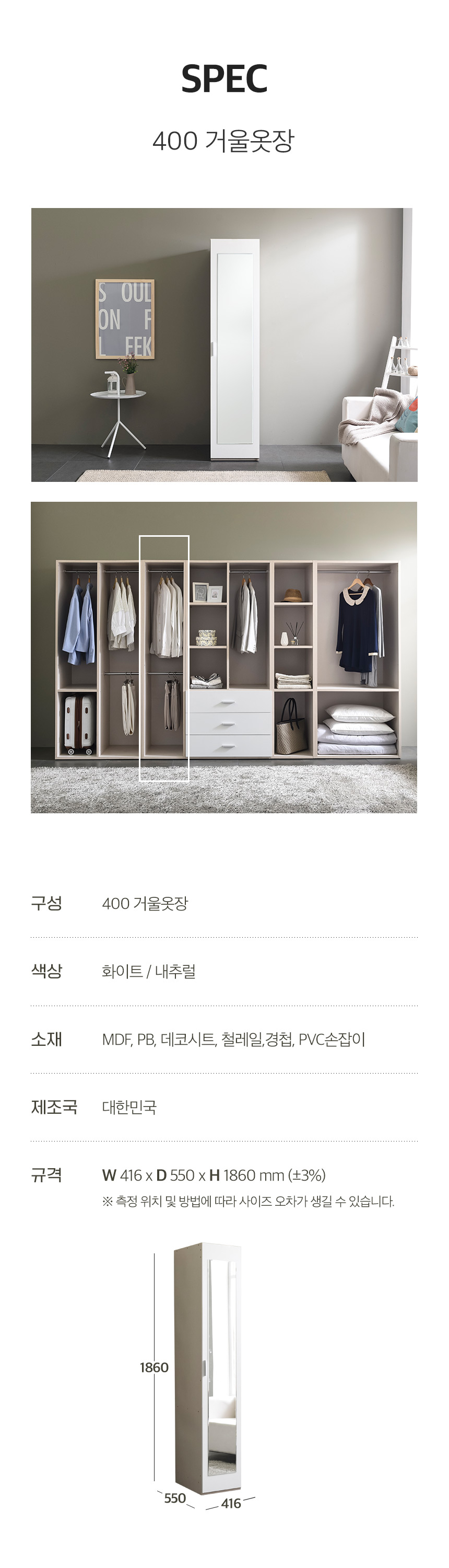 동서가구 모모 400 거울옷장 DF644980