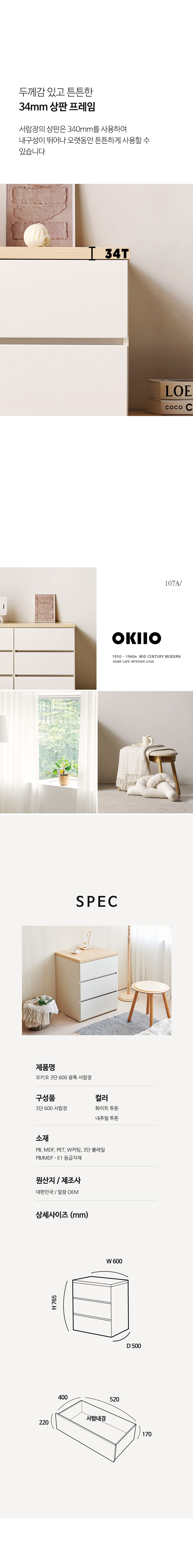밀랑 오키오 서랍장 3단 600 속깊은 2colors