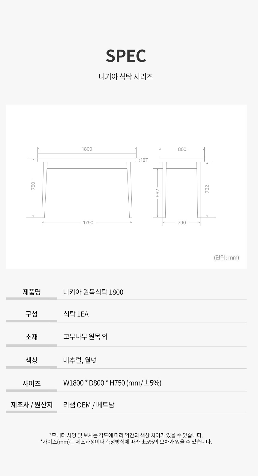 파로마 니키아 원목식탁 1800