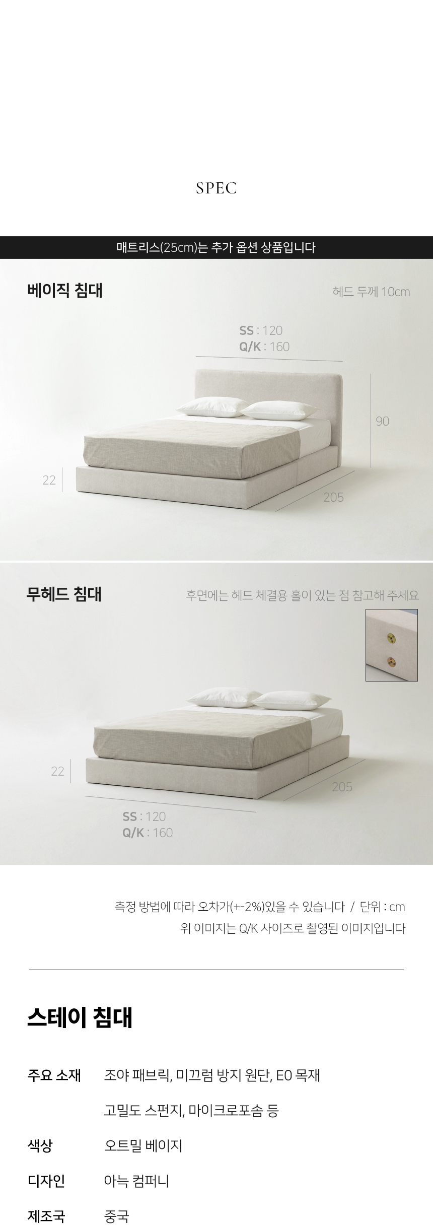 아늑 스테이 호텔식 베이직 패브릭 침대 슈퍼싱글
