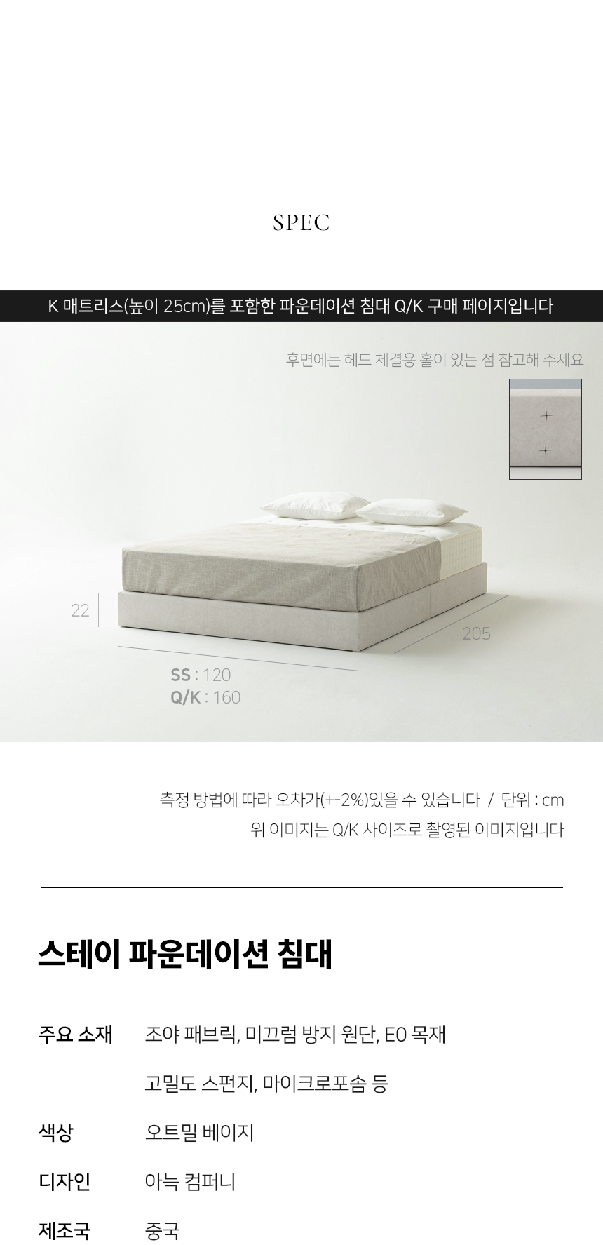 아늑 스테이 파운데이션 패브릭 침대 킹 25cm 매트포함