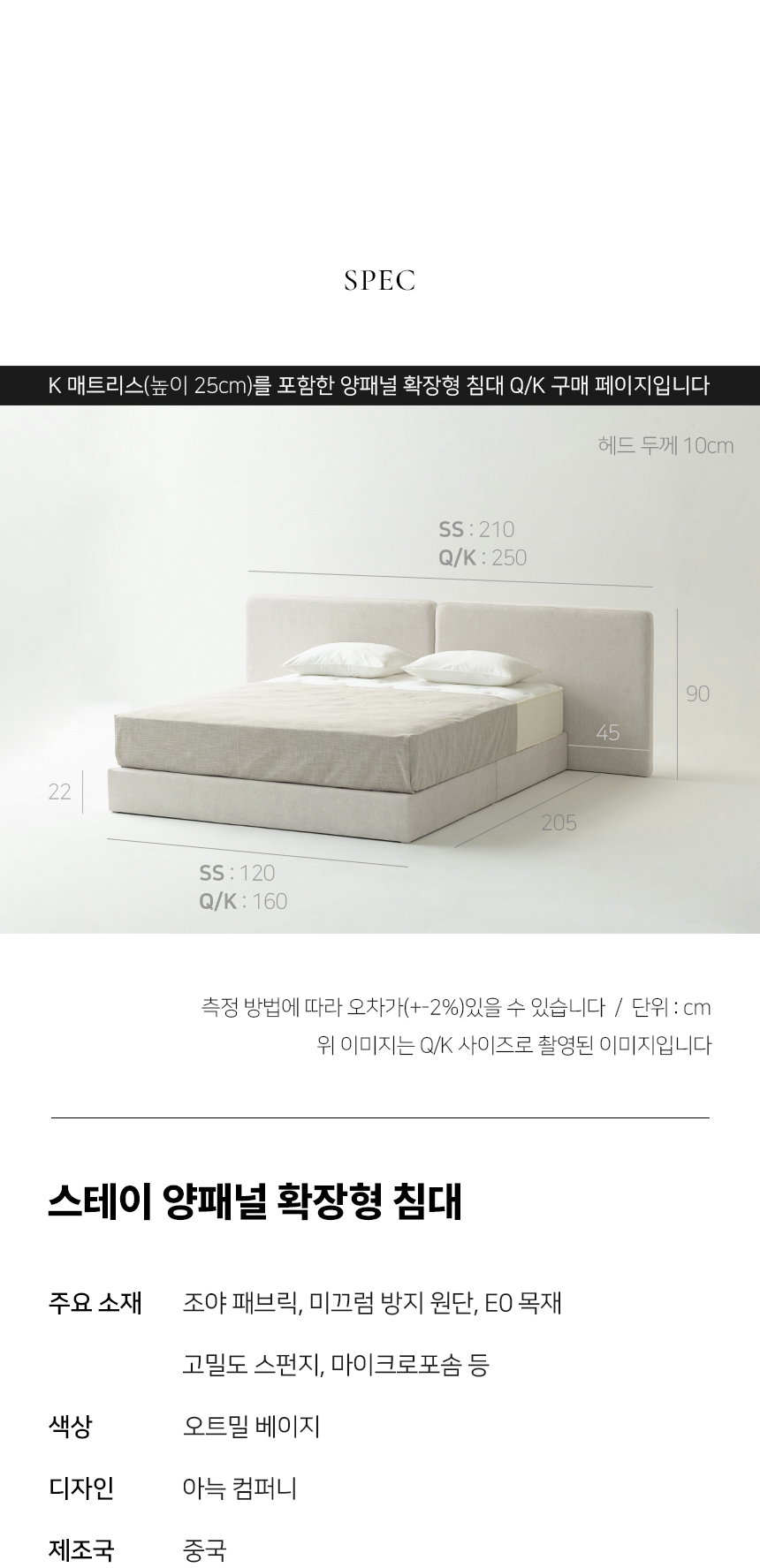 아늑 스테이 호텔식 양패널 패브릭 침대 킹 25cm 매트포함