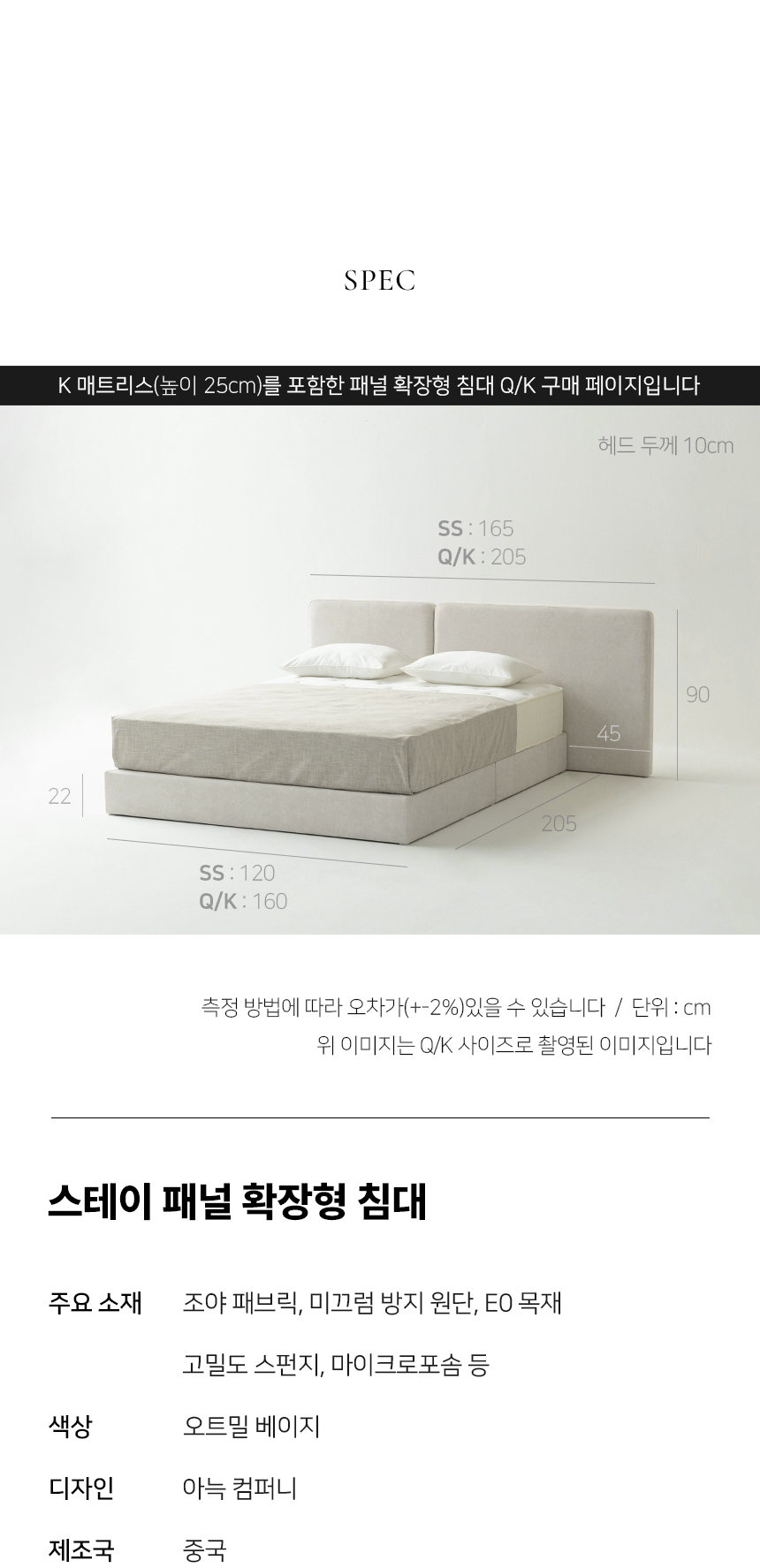 아늑 스테이 호텔식 패널 패브릭 침대 킹 25cm 매트포함