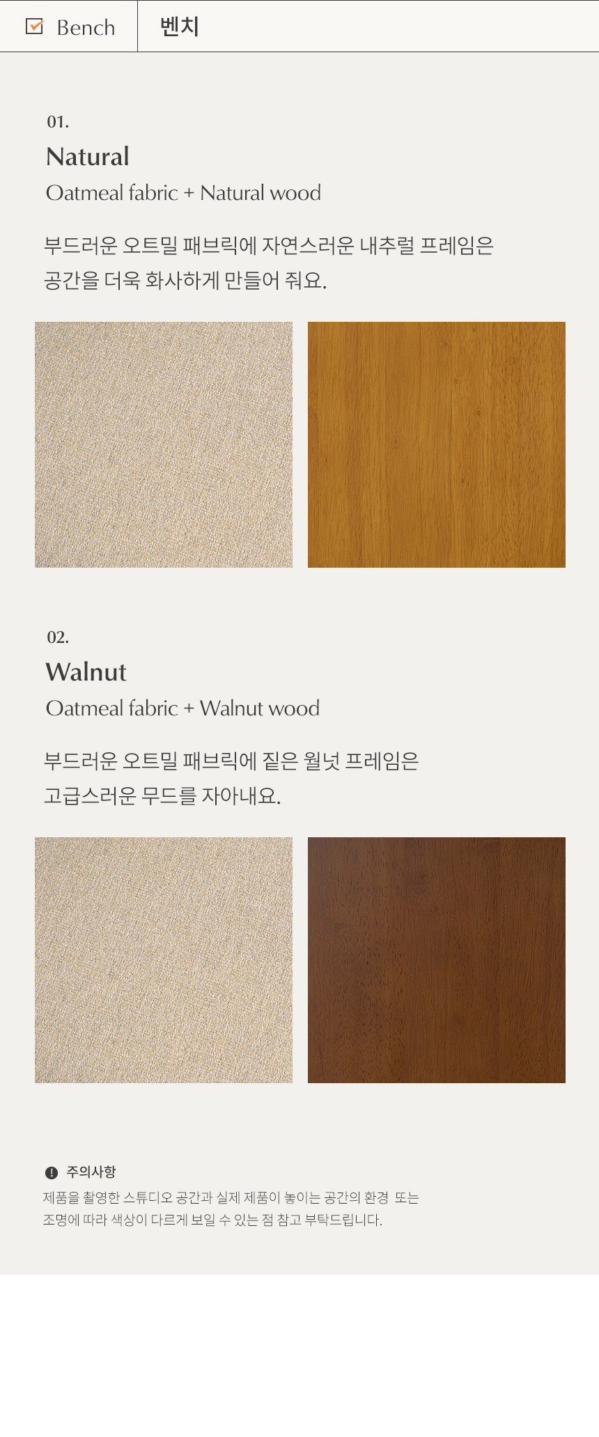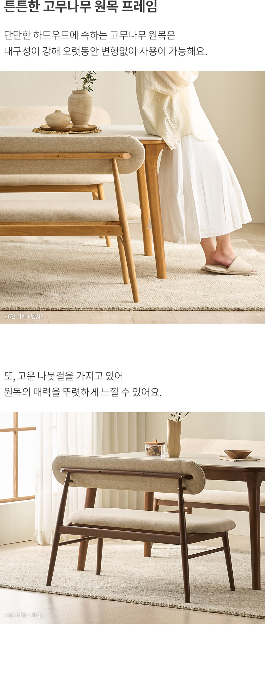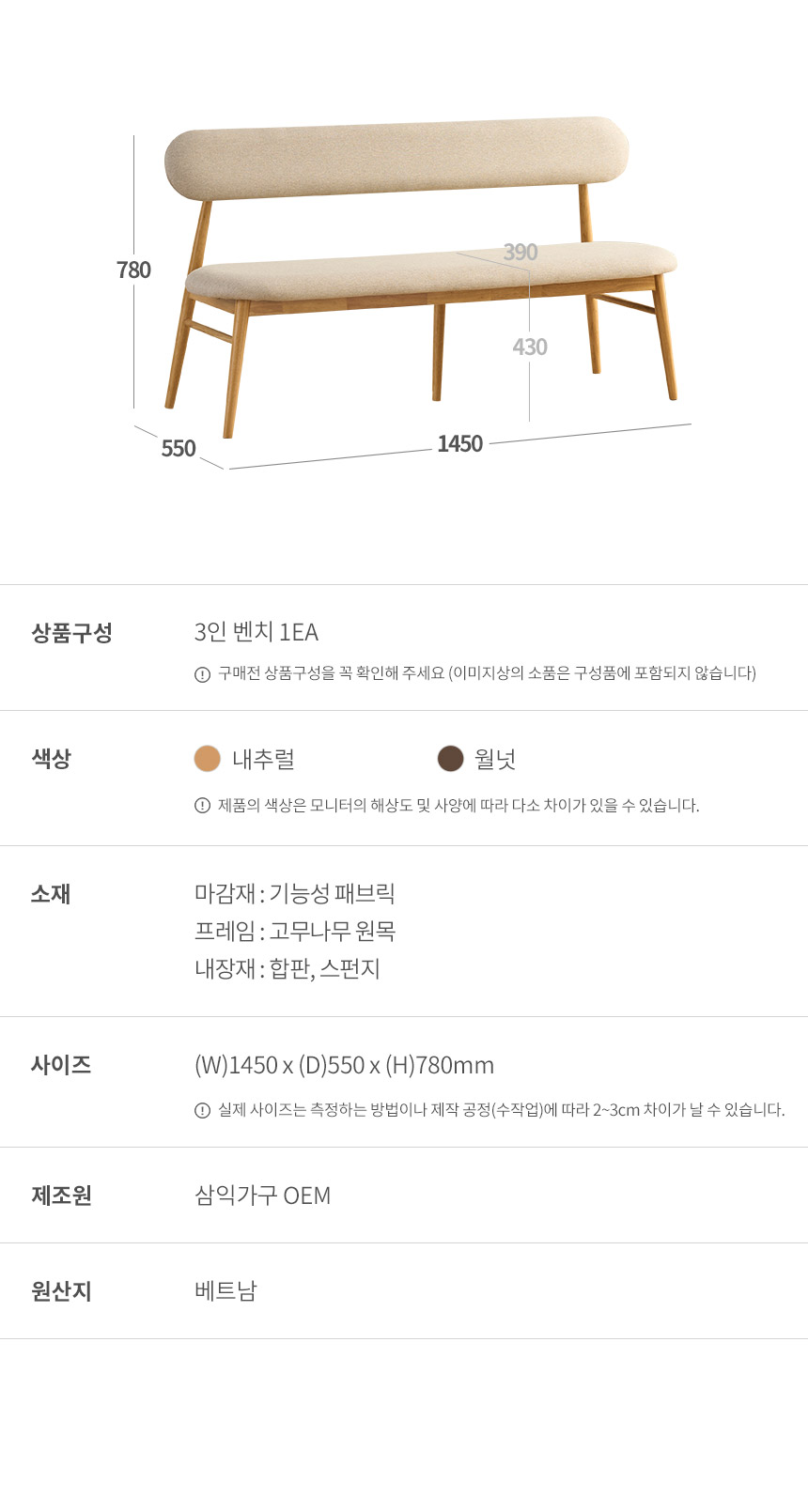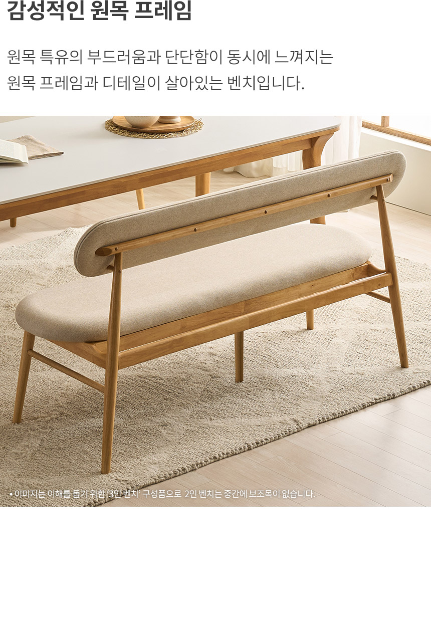 삼익가구 나폴리 3인용 원목 등받이 벤치 2colors (단품)