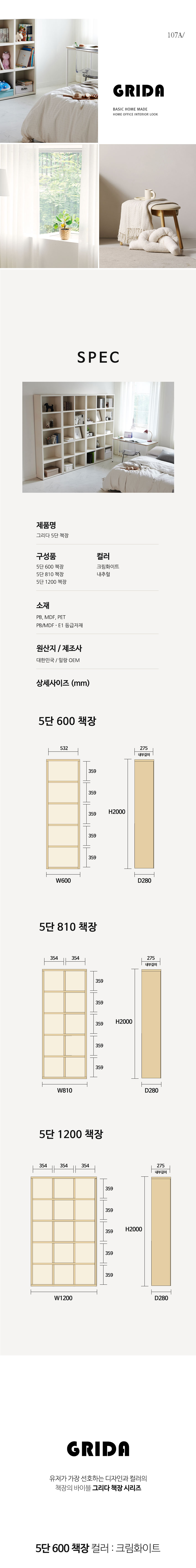 밀랑 그리다 베이직 5단 1200 책장 2colors