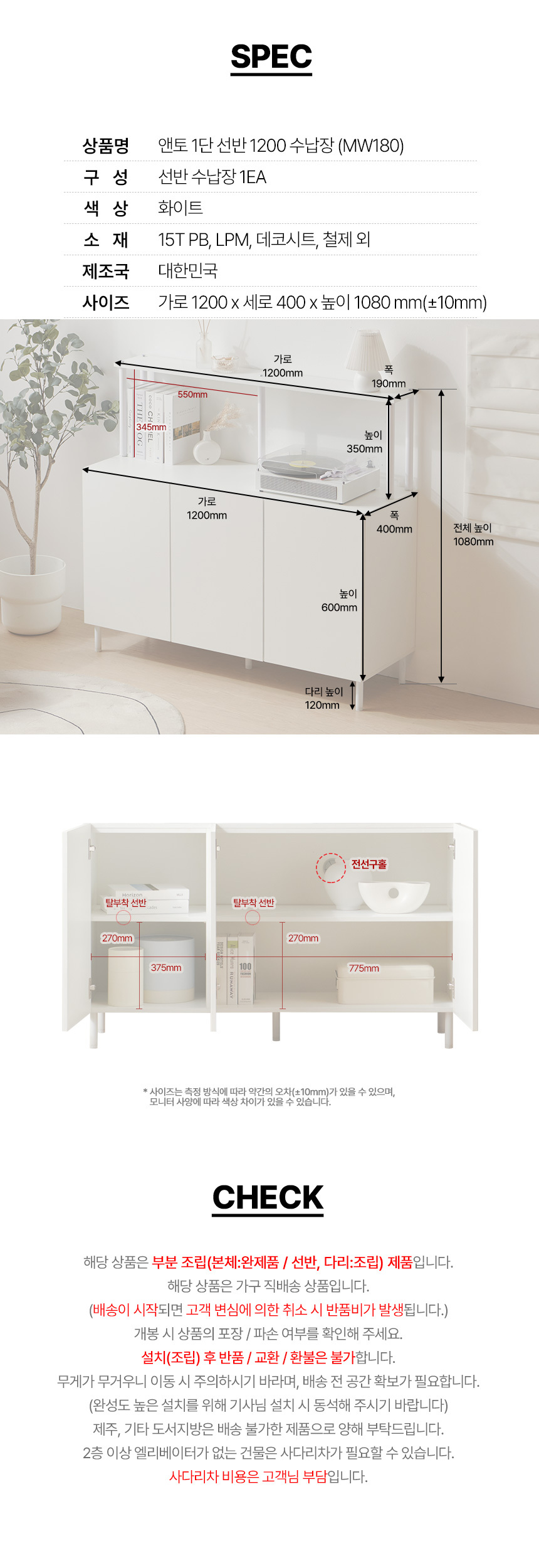 1단 선반 1200 높은 앤토 수납장 장식장 주방 다용도 진열장 그릇장