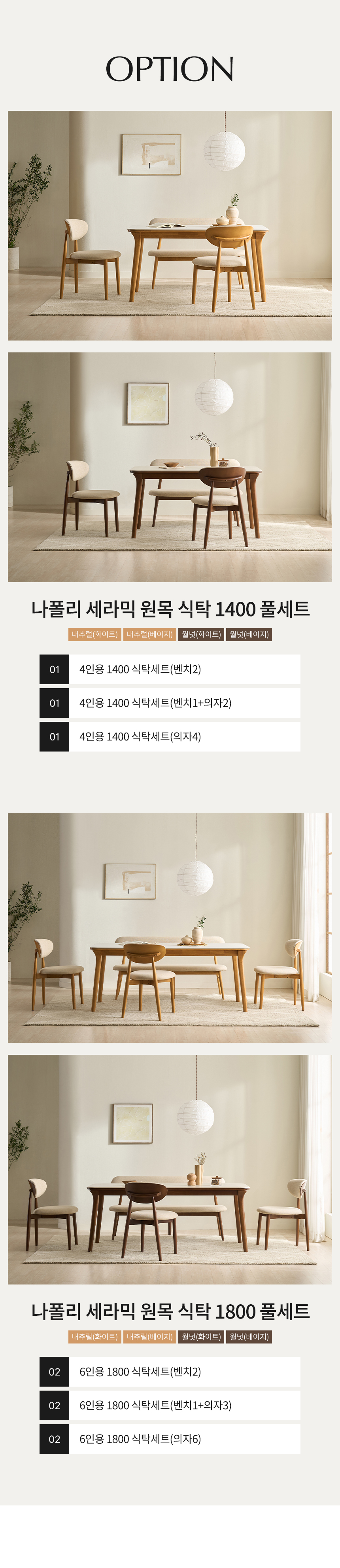삼익가구 나폴리 포세린 세라믹 4인용/6인용 원목 식탁 풀세트(1400/1800)