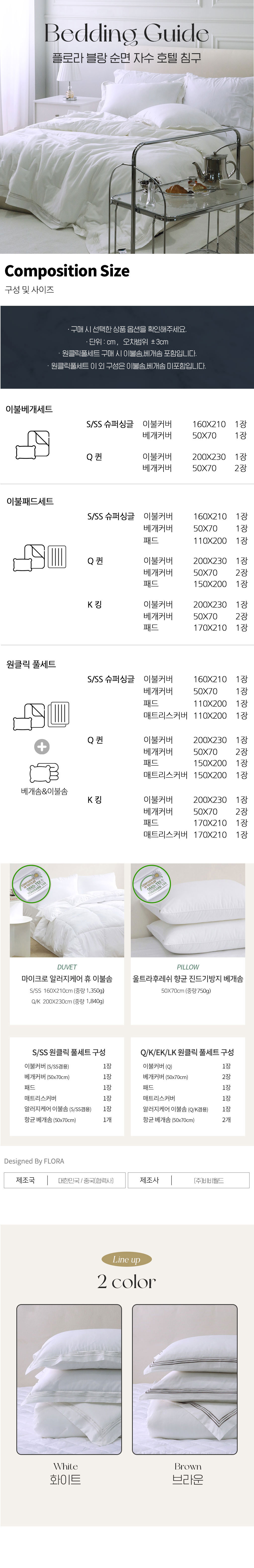 (원클릭풀세트)블랑 프리미엄 고밀도 60수 순면 호텔자수 이불커버 풀세트 SS/Q/K