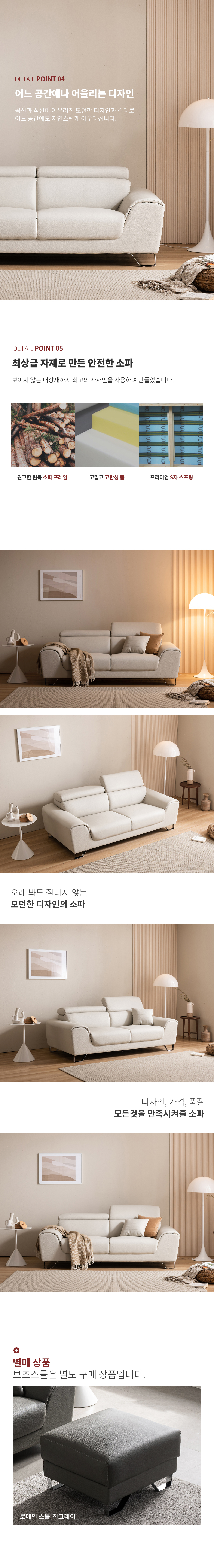 폴로까사 로메인 가죽 헤드레스트 3인용 소파