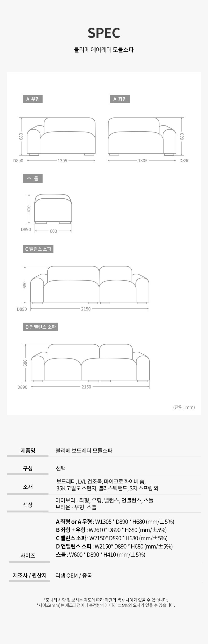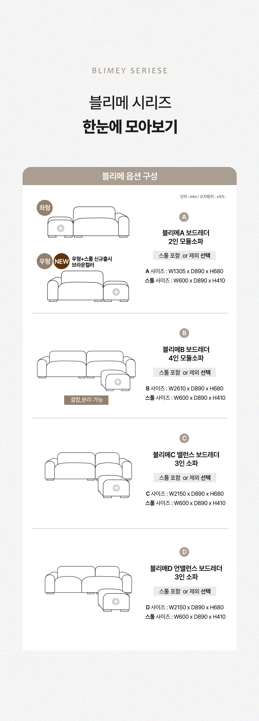 파로마 블리메A 보드레더 2인용 모듈소파