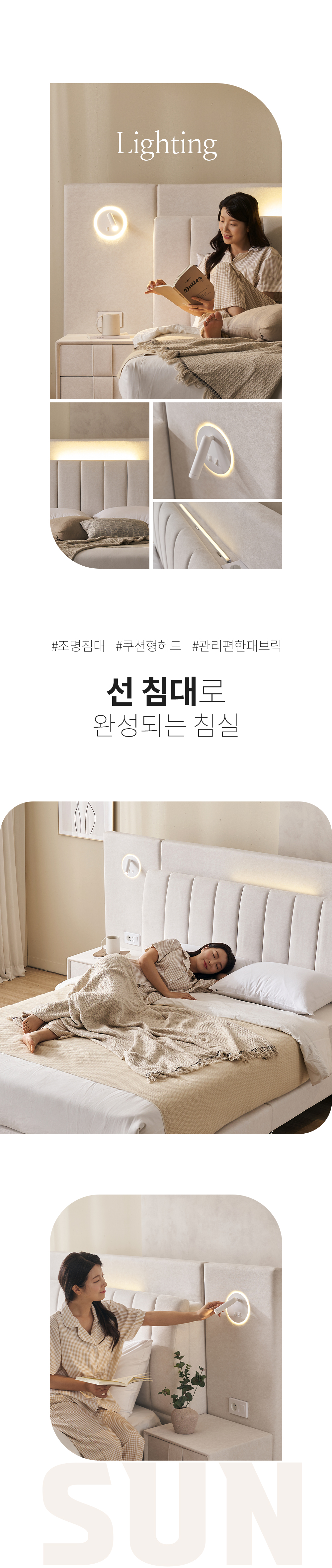 우아미가구 선 SS 호텔식 조명 패브릭 침대 프레임