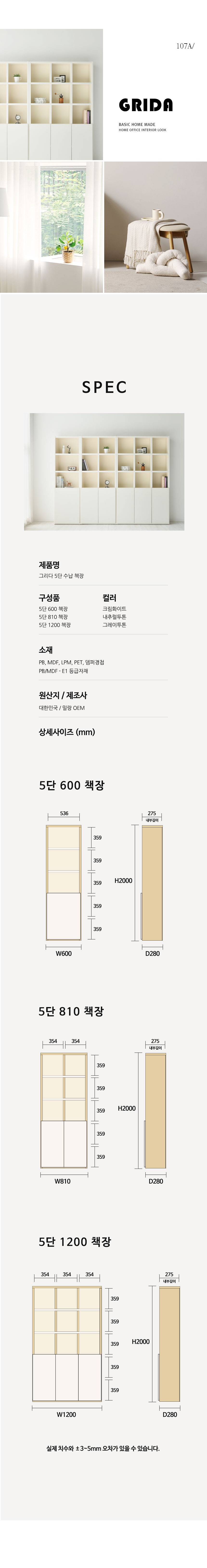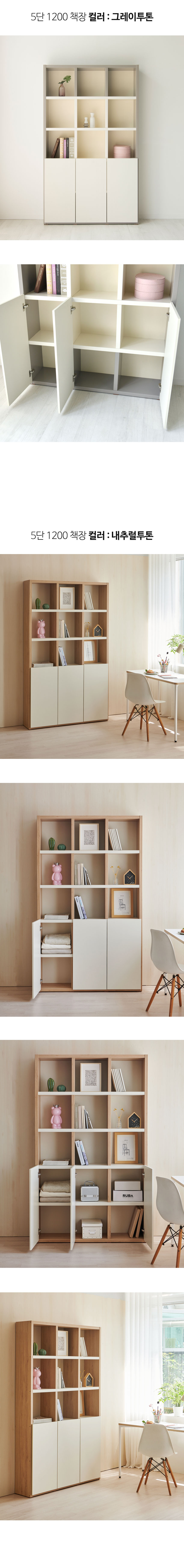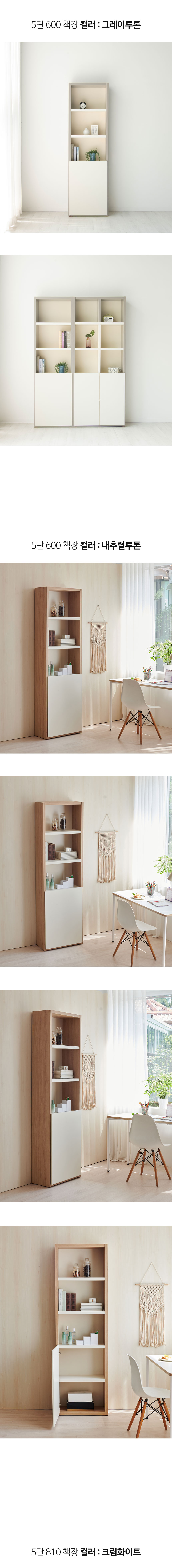 밀랑 그리다 5단 810 수납도어 책장 3colors