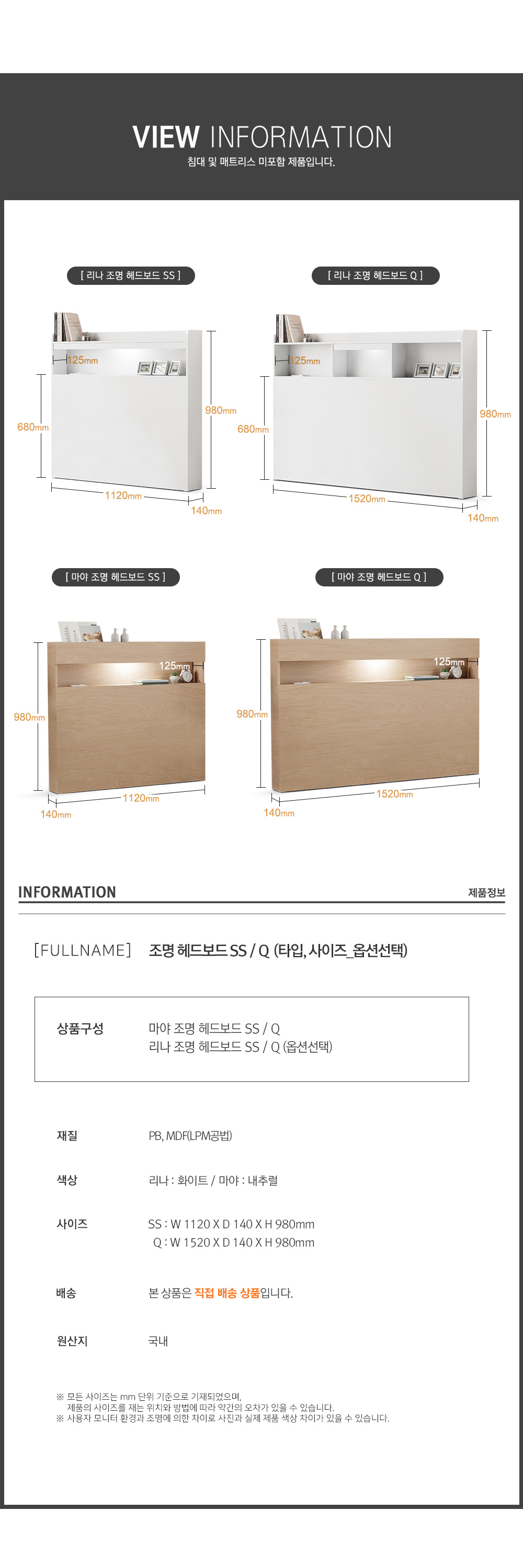 숨결 LED 조명침대 헤드보드 시리즈