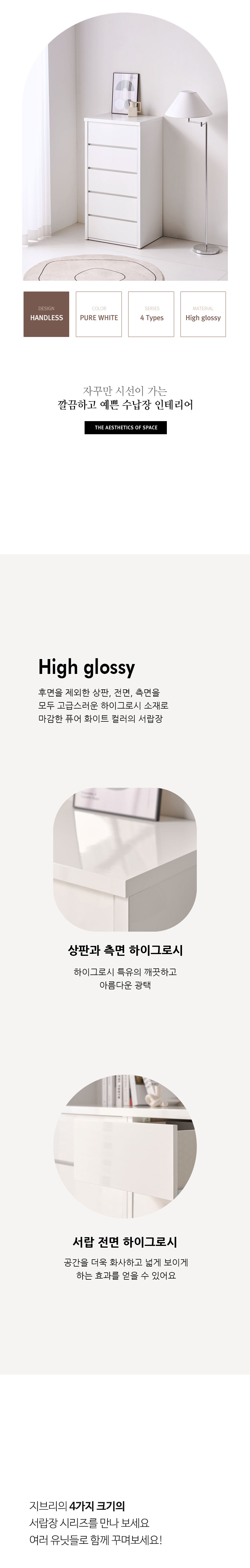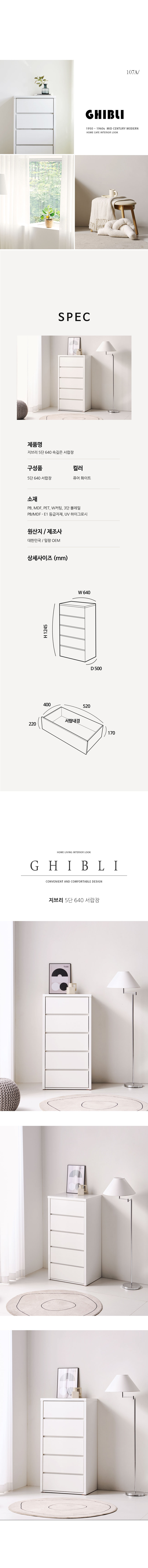 밀랑 지브리 5단 640 속깊은 서랍장 화이트 하이그로시