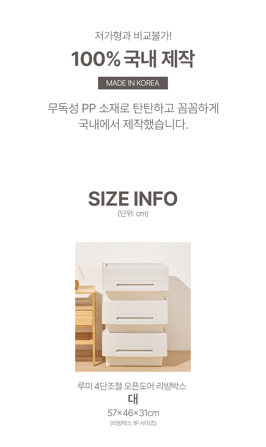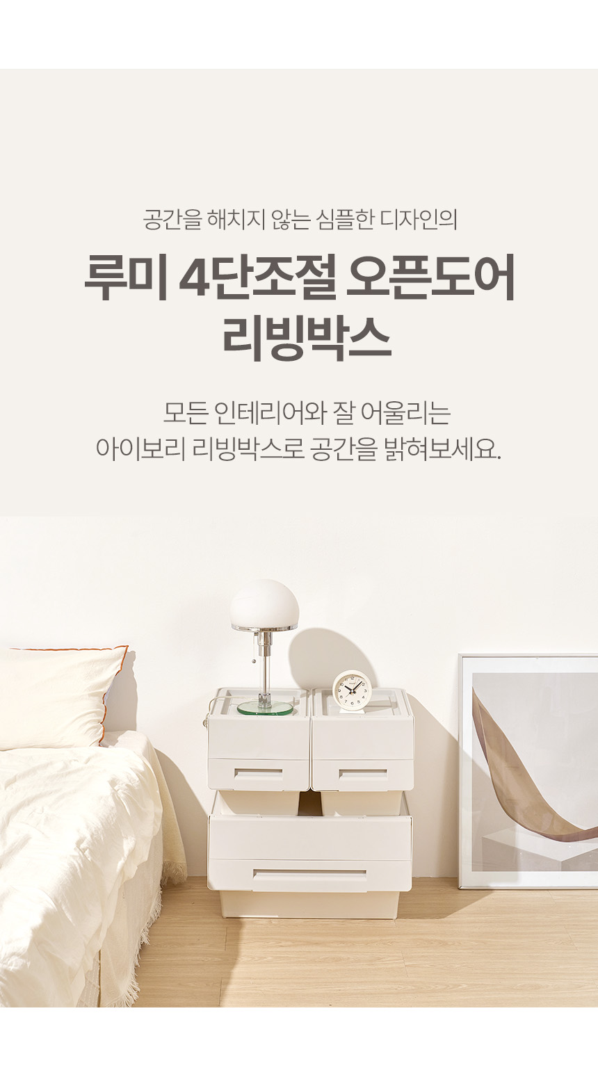 [특가~3/23AM10]루미 4단조절 오픈도어 리빙박스 대