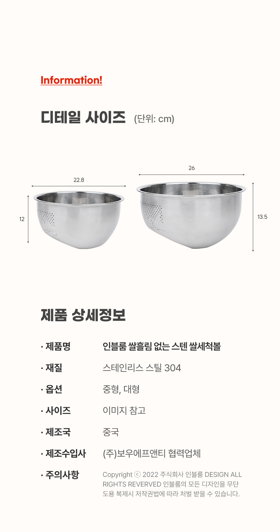 인블룸 녹이 슬지 않는 스텐304 쌀세척볼 2Size