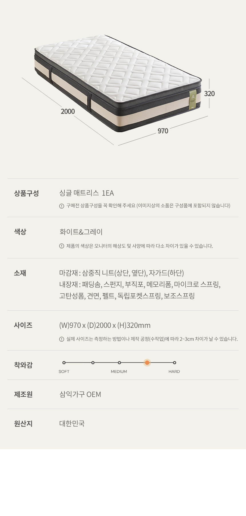 [삼익가구]모어슬립 미디엄하드 컴포트 코어 스프링 매트리스(싱글)