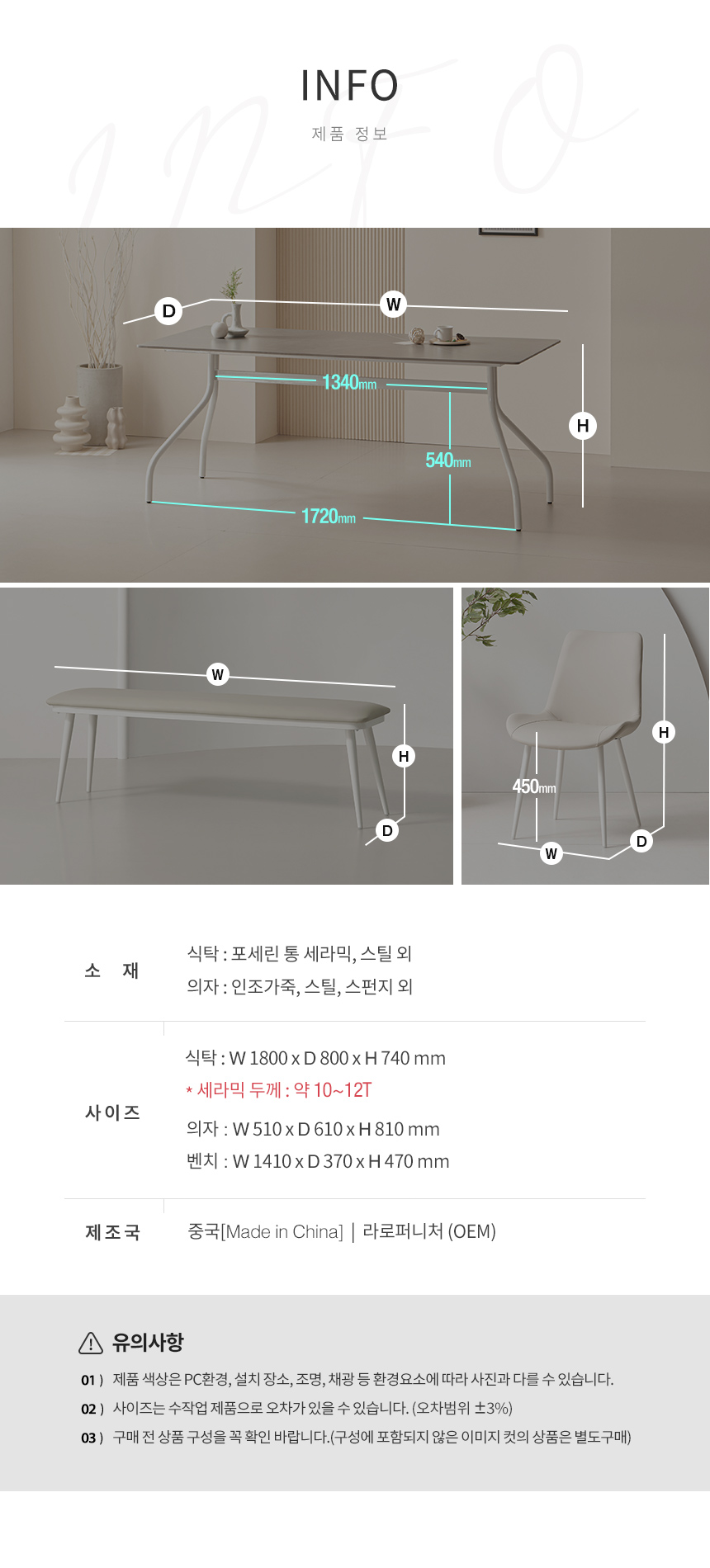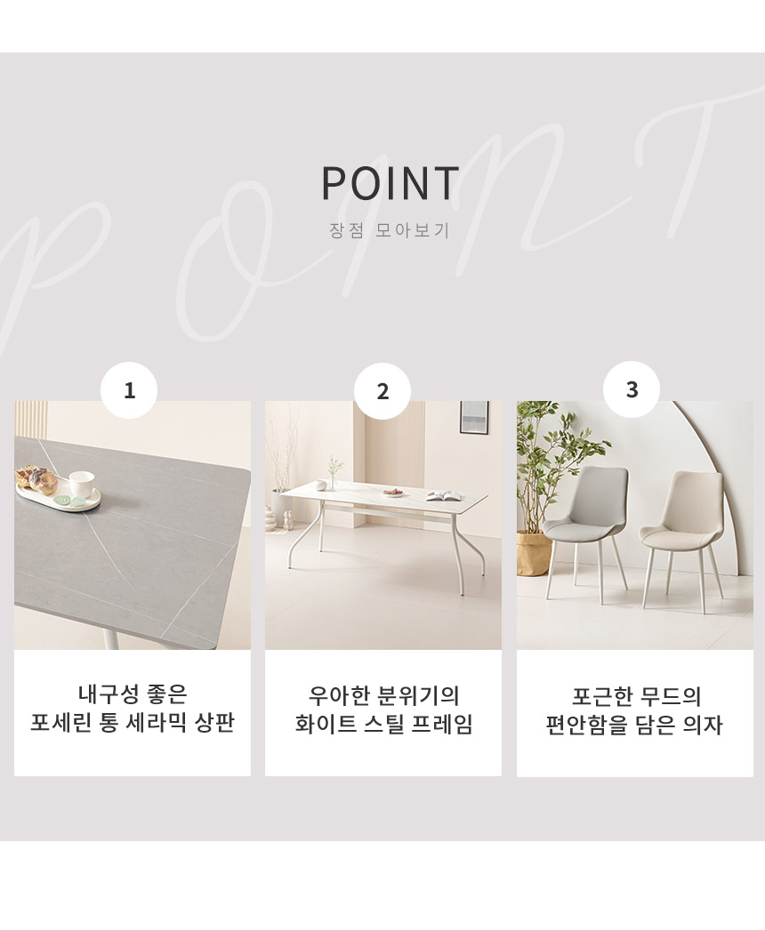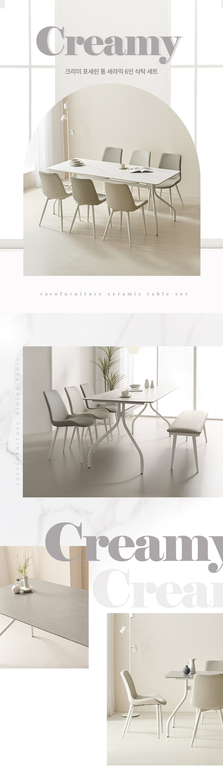 라로퍼니처 크리미 1800 포세린 통 세라믹 6인 식탁 세트