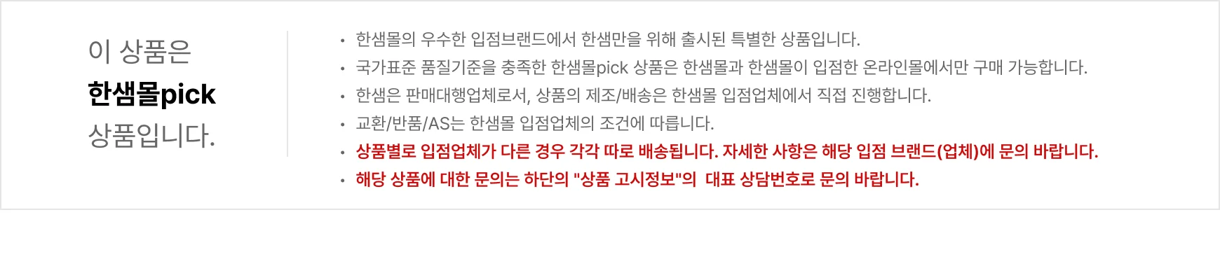 한샘몰 판매 상품 중 '입점브랜드상품'으로 명기된 상품의 경우, (주)한샘은 판매자가 아닌 통신판매중개자이므로 판매자로서의 책임을 부담하지 아니합니다. 해당 상품, 거래정보 및 거래에 대하여는 실제 판매자인 각 입점업체에게 책임이 있습니다.