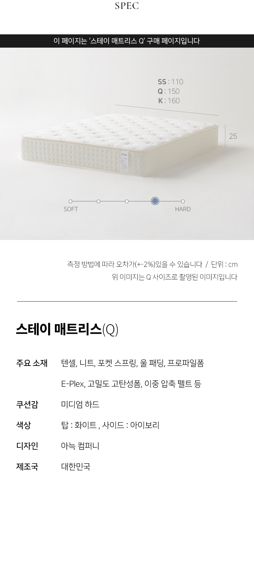 아늑 스테이 25cm 편안한 타이트탑 독립스프링 퀸 매트리스 Q