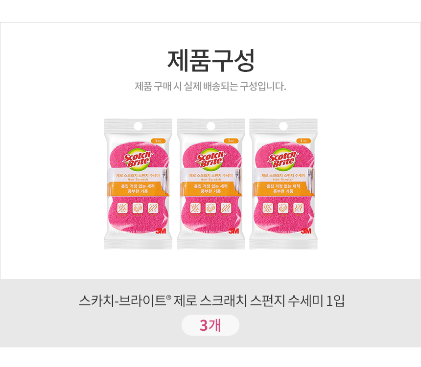 [3M]제로스크래치 스폰지수세미 1입(흠집방지용) 3개세트