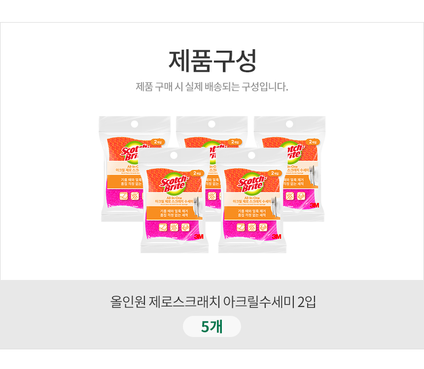 [3M]제로스크래치 아크릴수세미 2입(흠집방지용) 5개세트