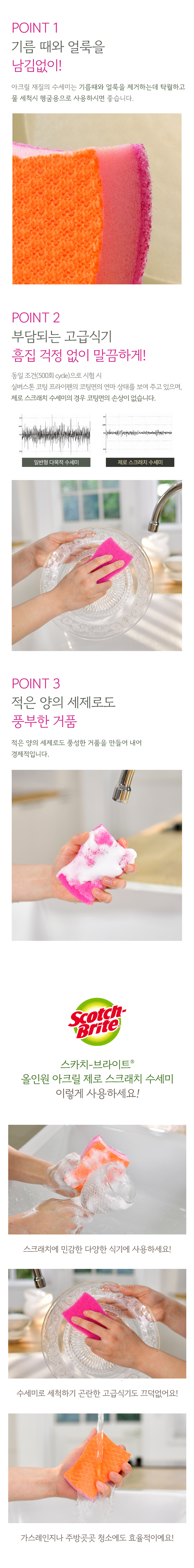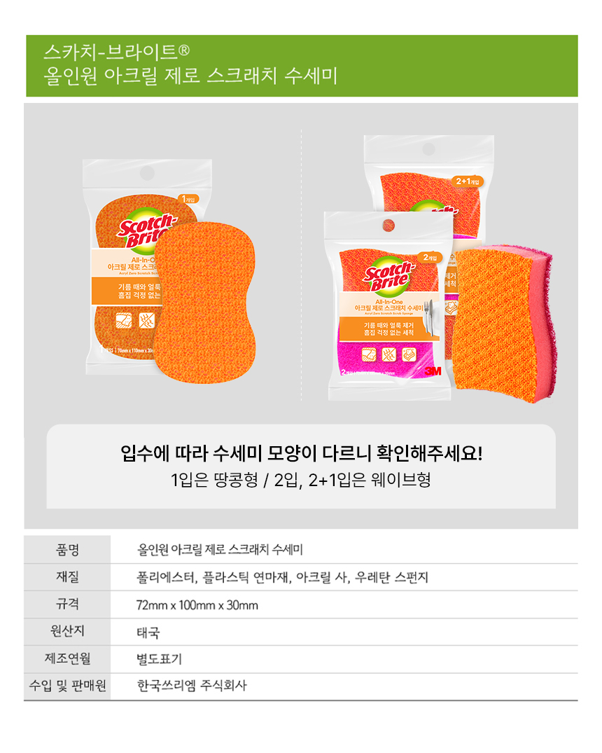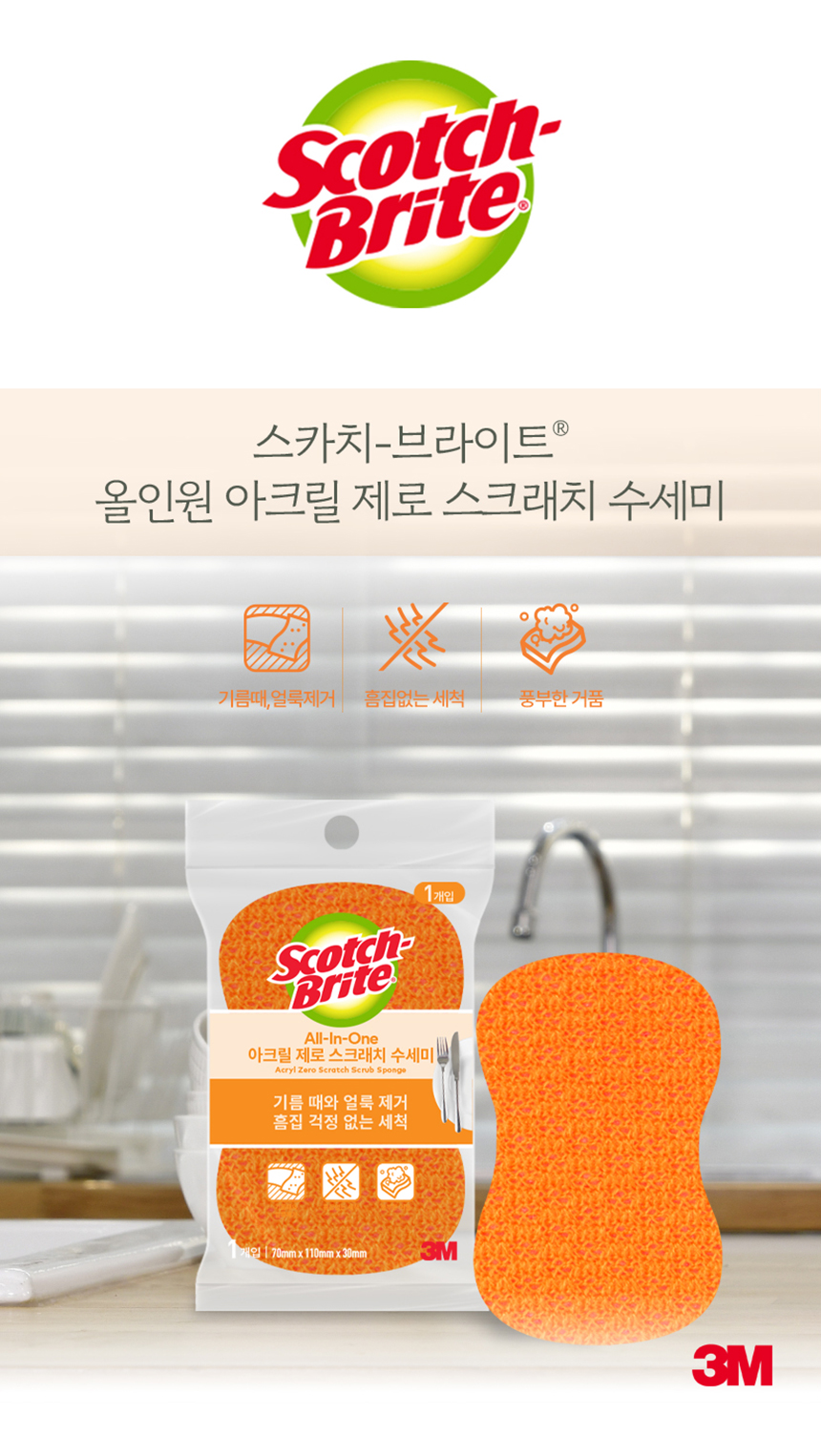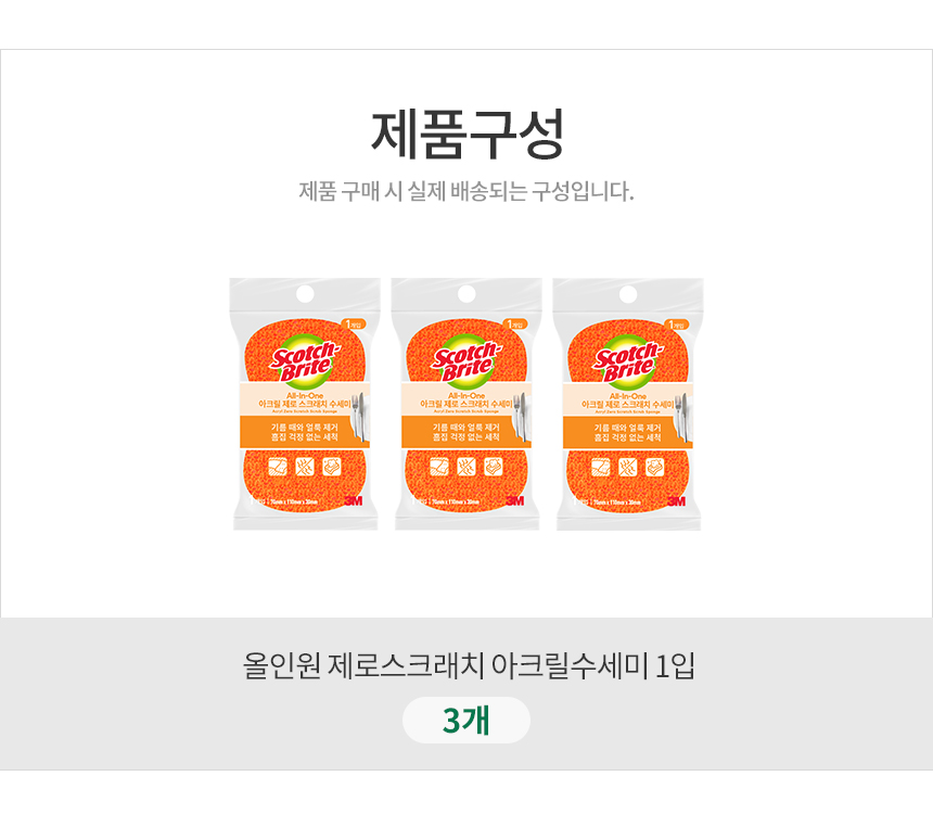 [3M]제로스크래치 올인원 아크릴수세미 1입(흠집방지용) 3개세트