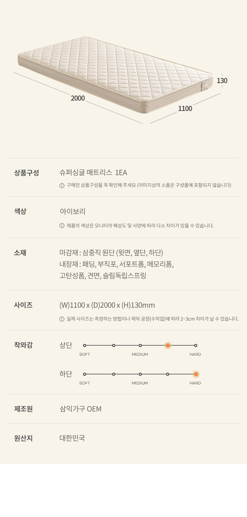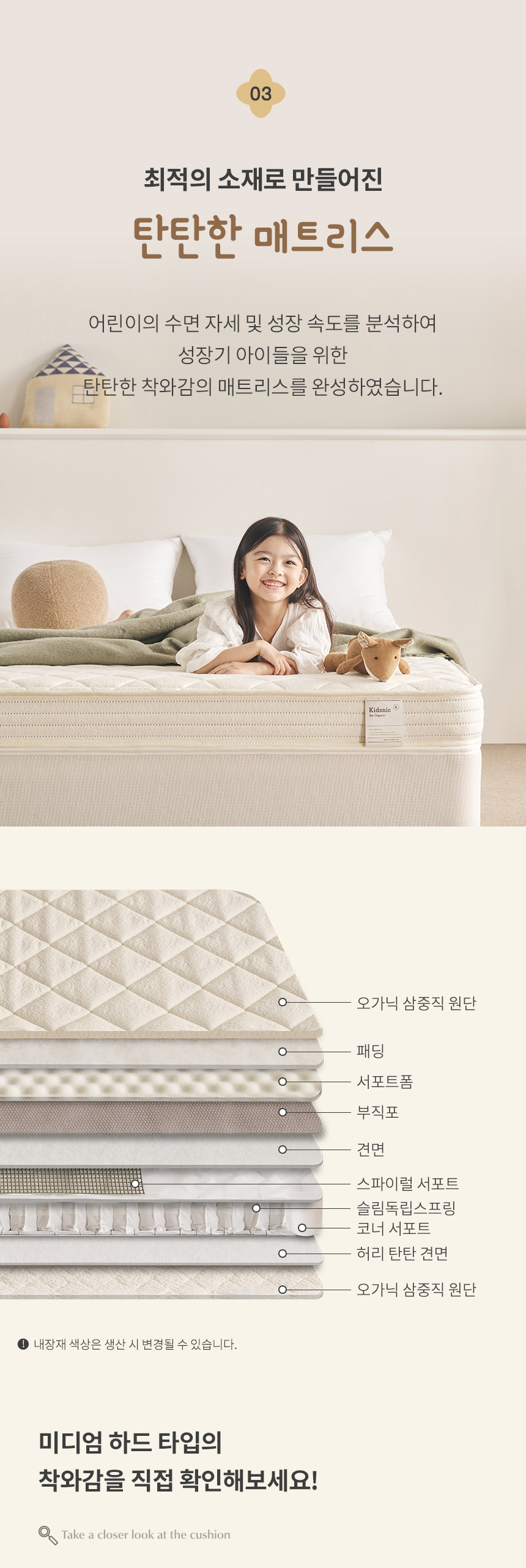 삼익가구 키즈닉 130T 오가닉 독립스프링 낮은 매트리스(슈퍼싱글)