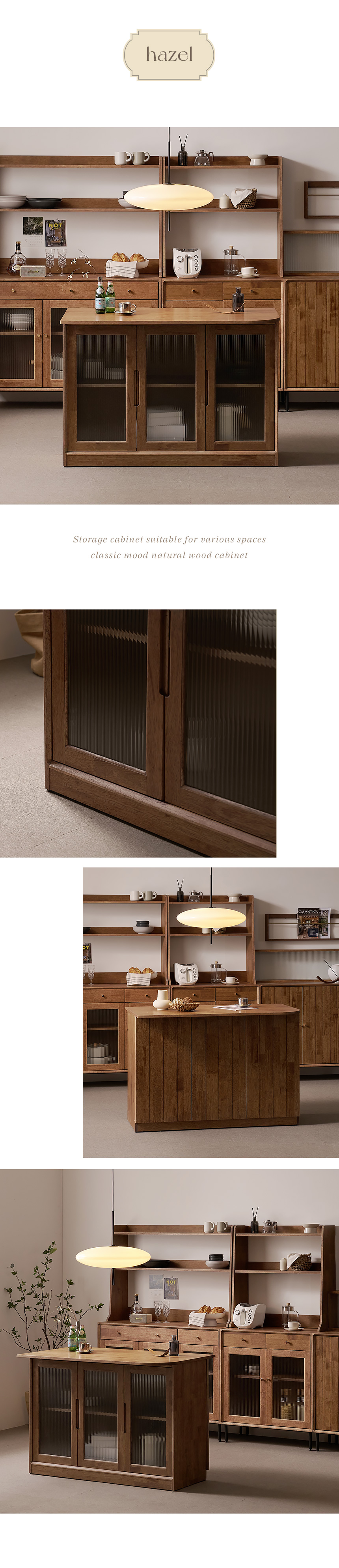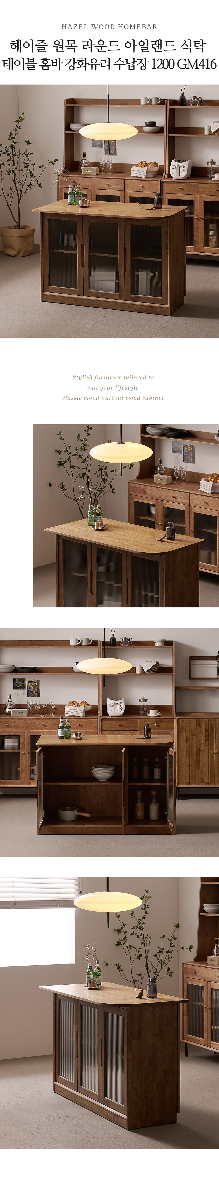 헤이즐 원목 라운드 아일랜드 식탁 유리수납장1200 GM416C