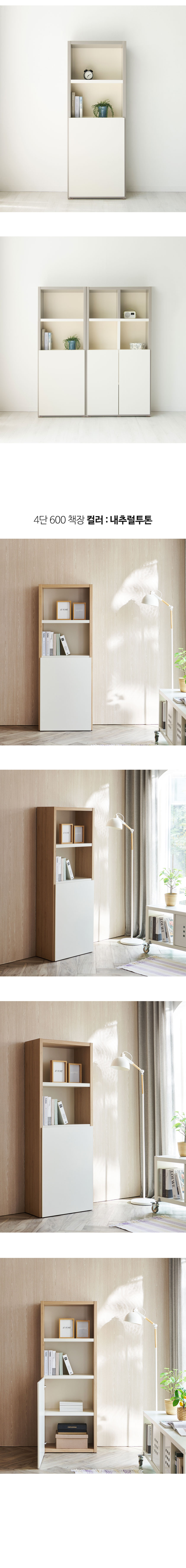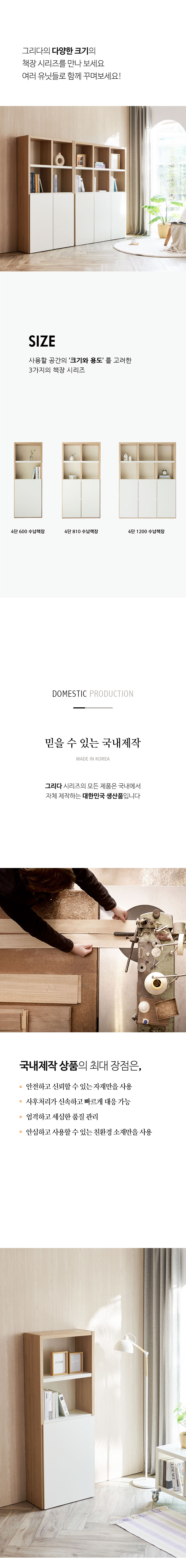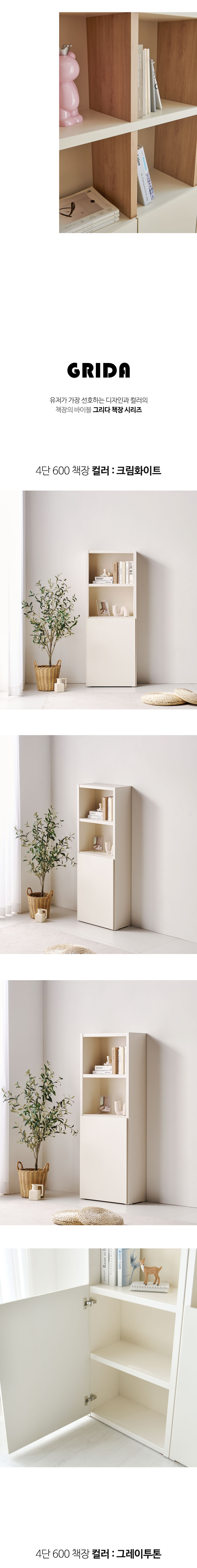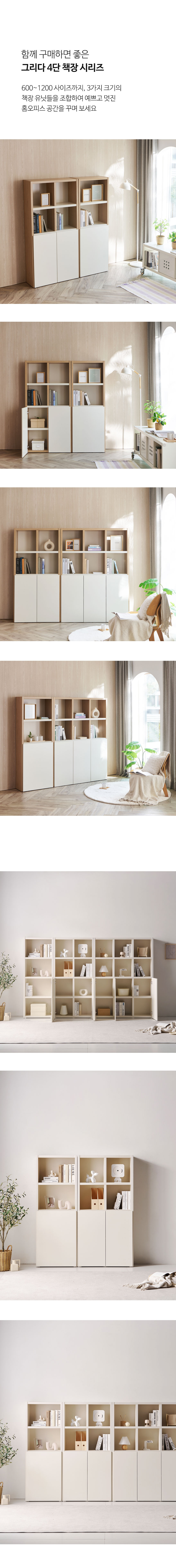 밀랑 그리다 4단 600 수납도어 책장 3colors
