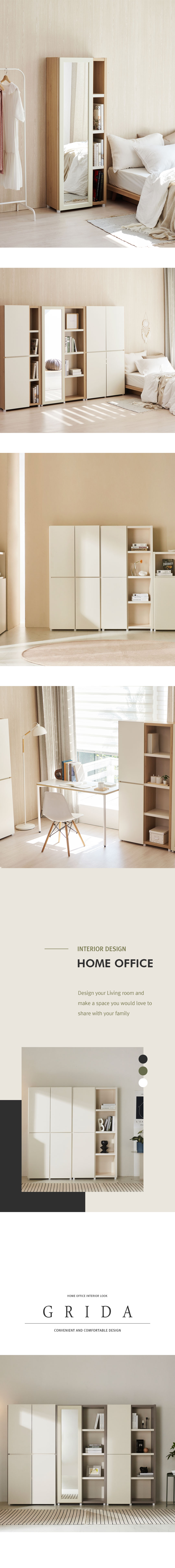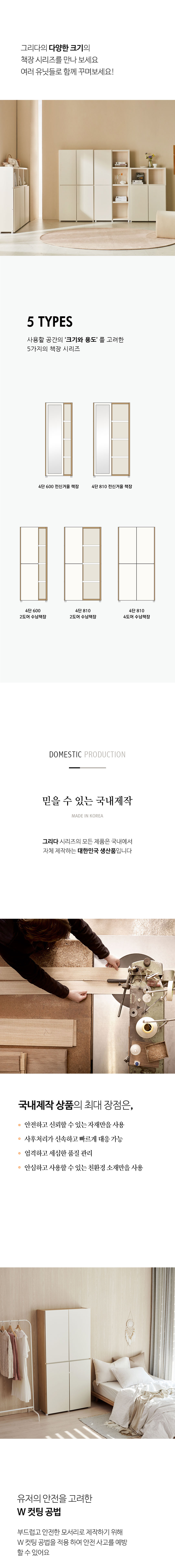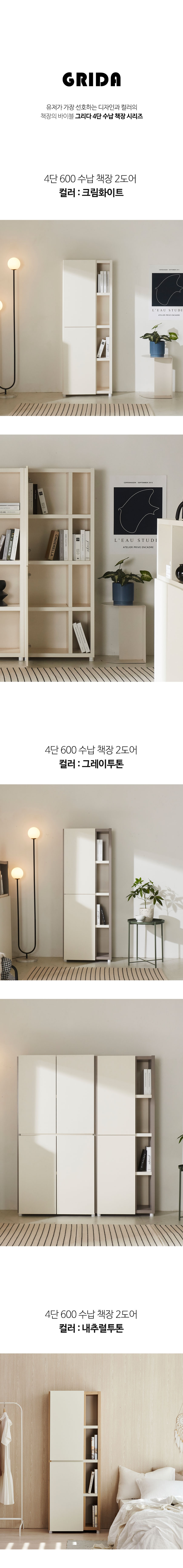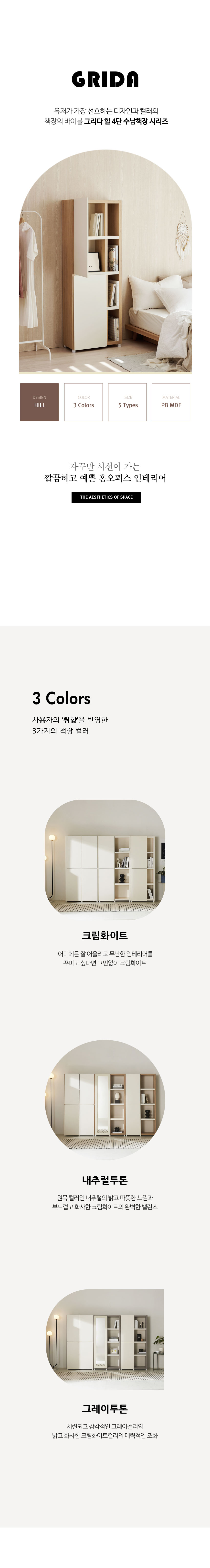 밀랑 그리다 힐 4단 600 수납 책장 2도어 3colors