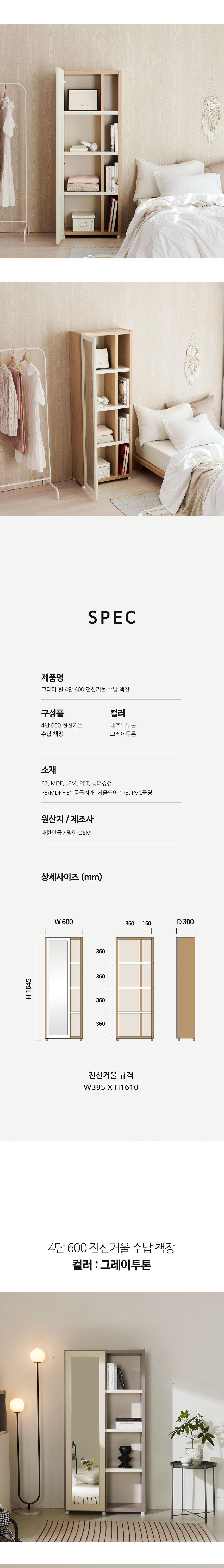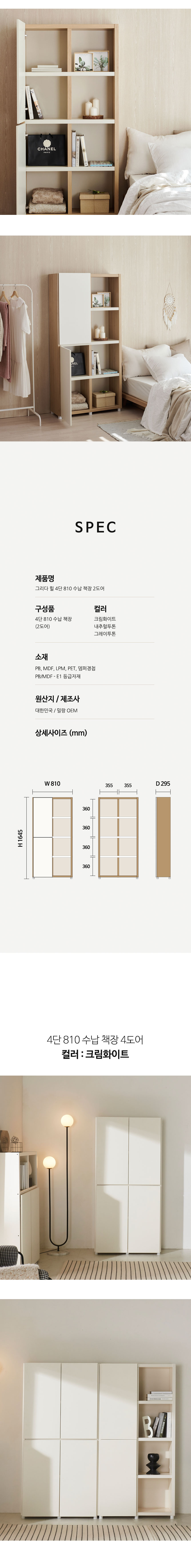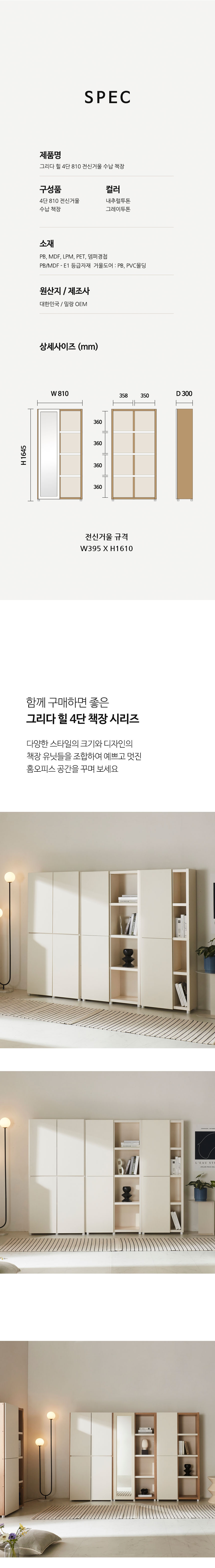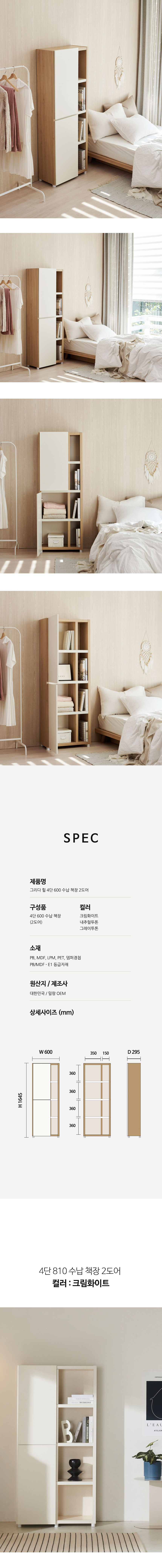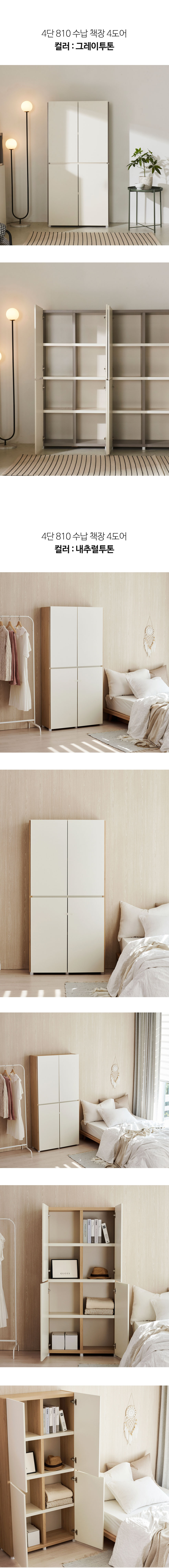 밀랑 그리다 힐 4단 600 수납 책장 2도어 3colors