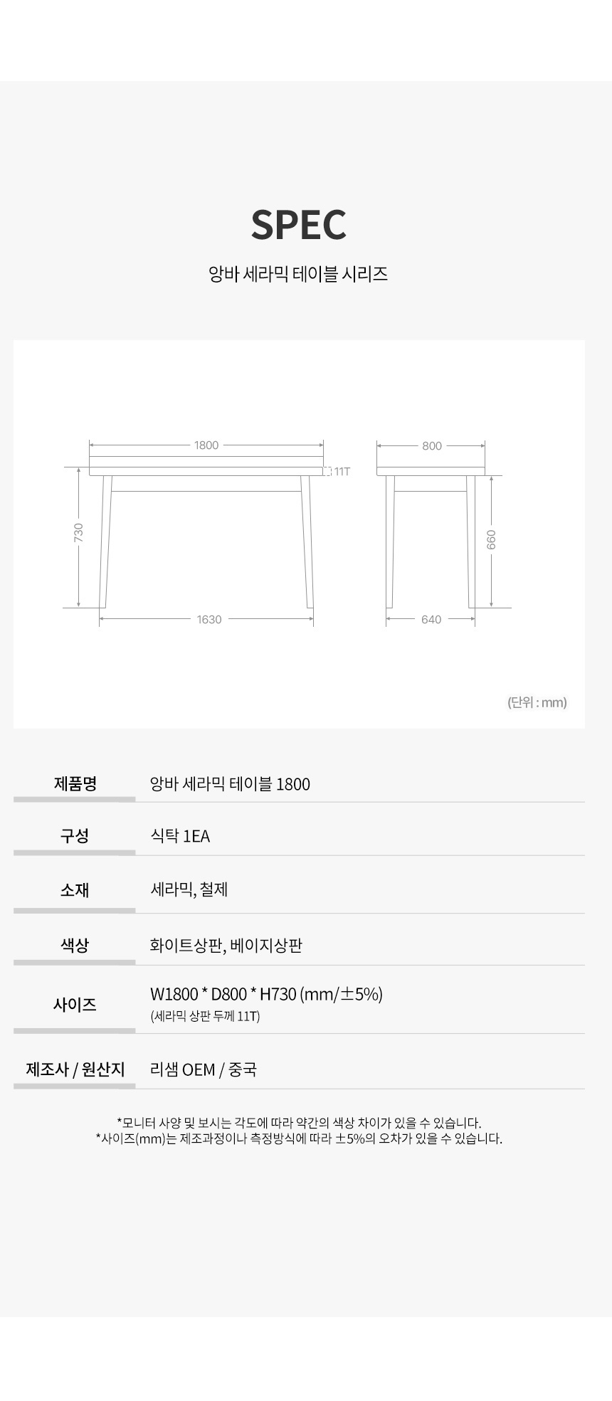 파로마 앙바 세라믹 테이블 1800
