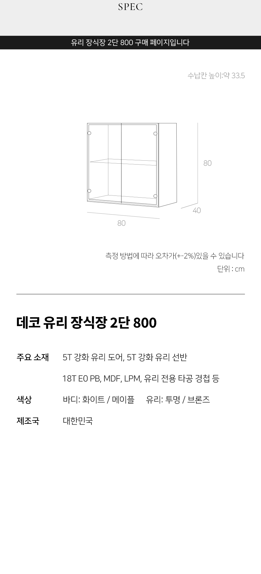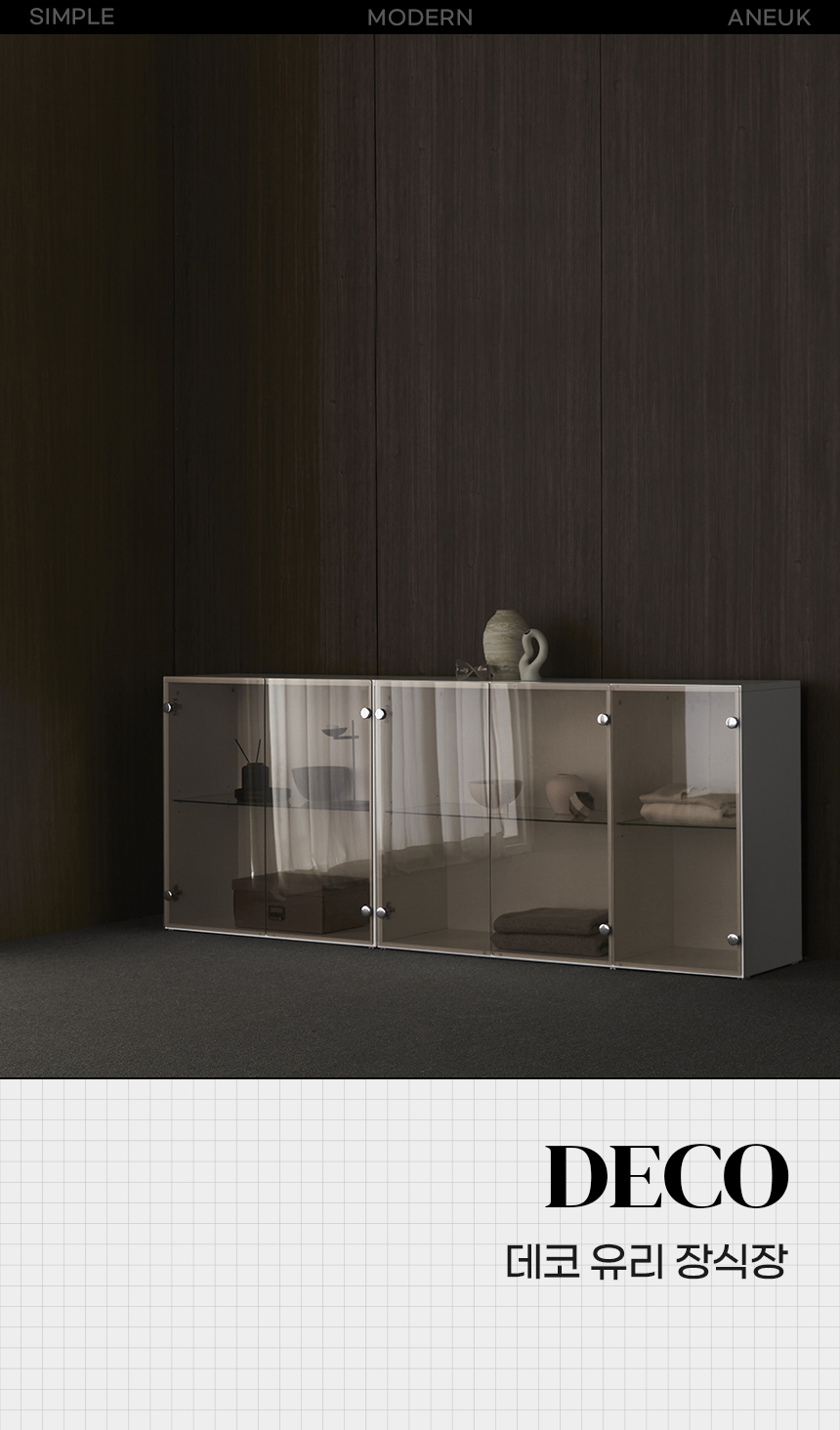 아늑 데코 E0 유리 장식장 2단 800 높은 수납장 (4color)