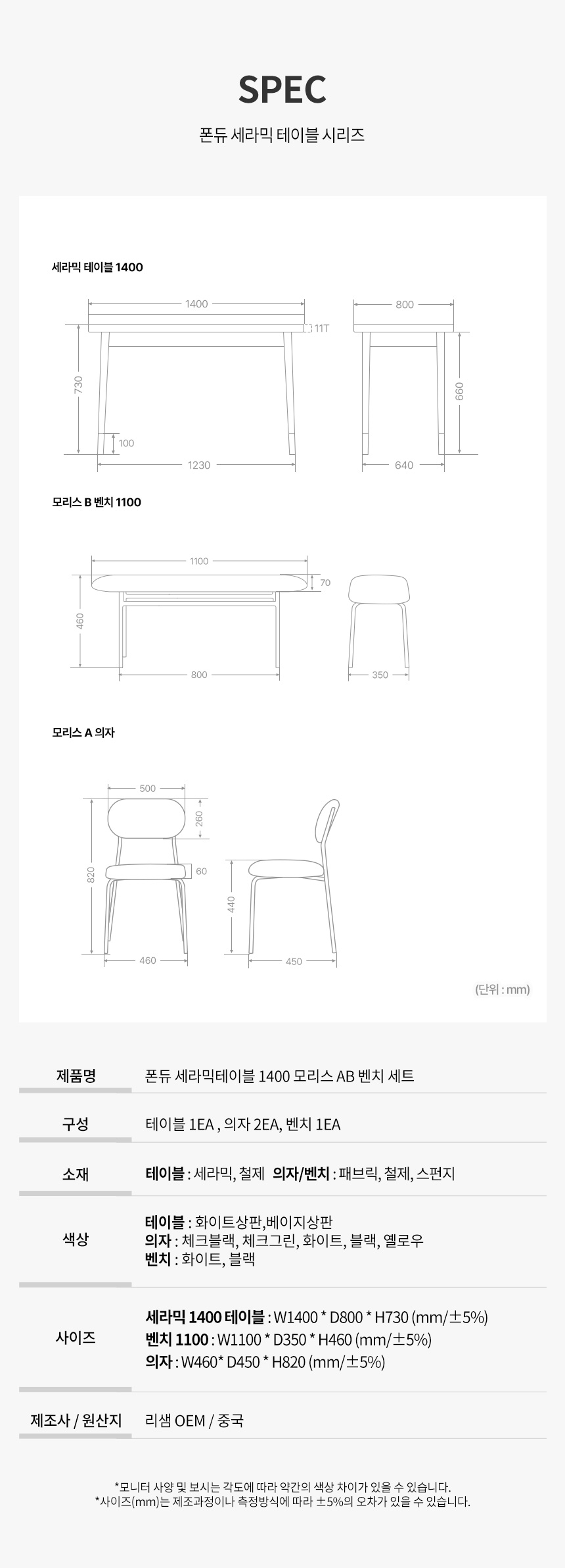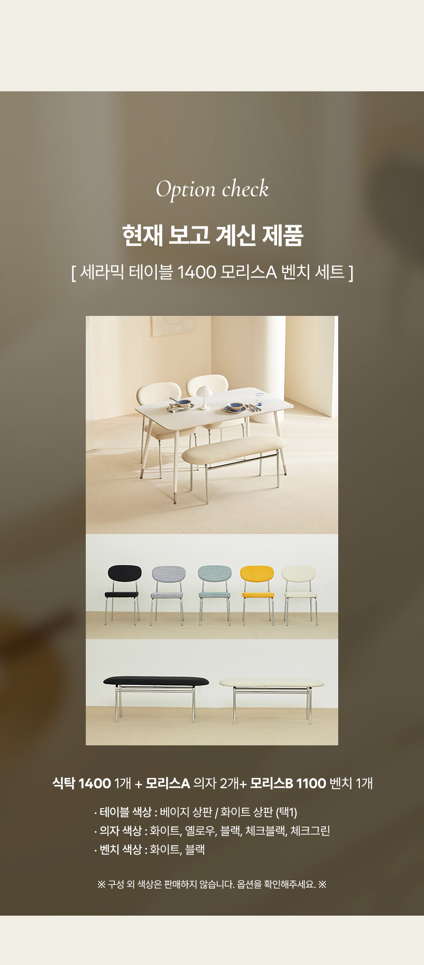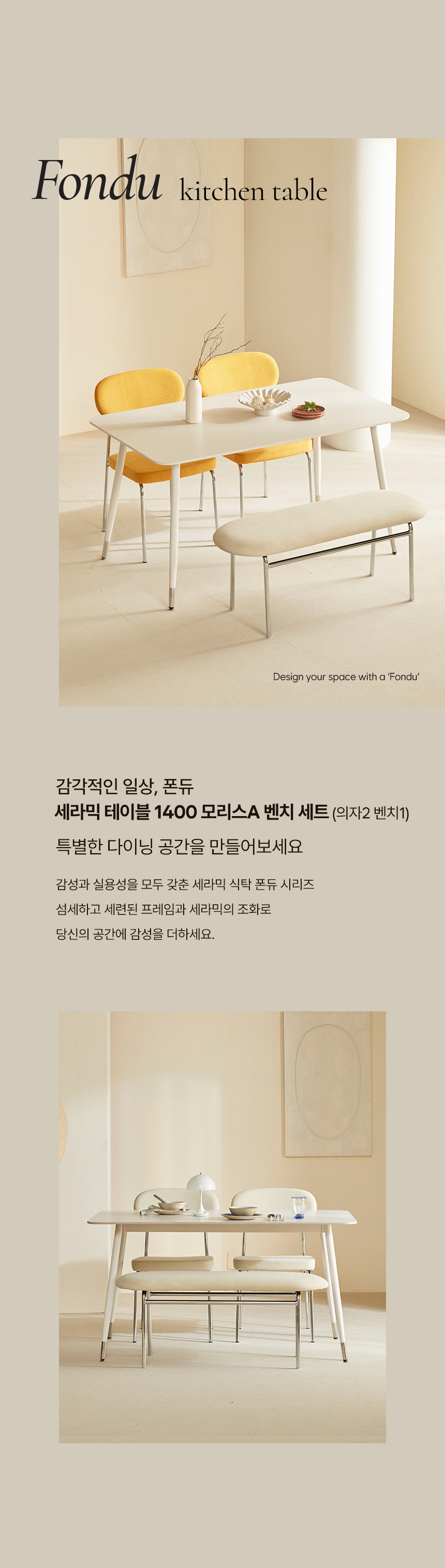 파로마 폰듀 세라믹 테이블 1400 모리스A 벤치 세트(A의자2+B벤치1)