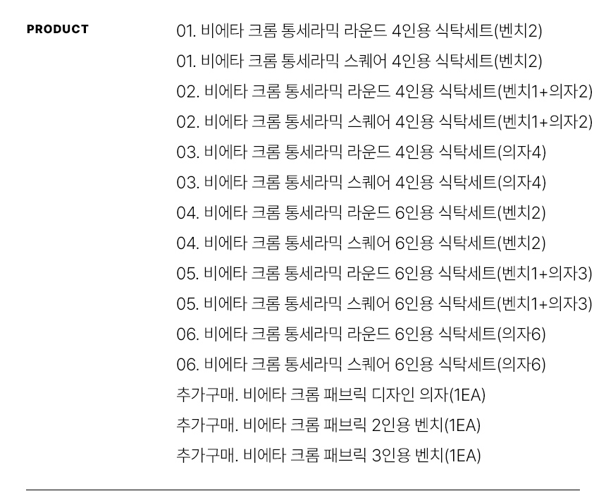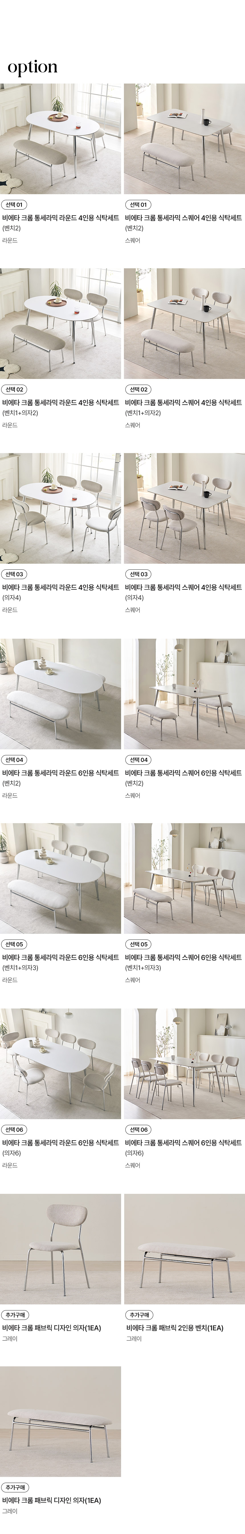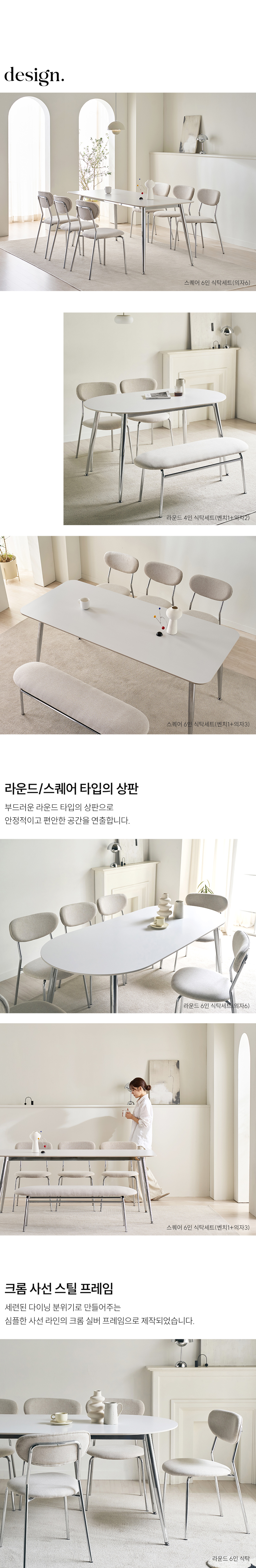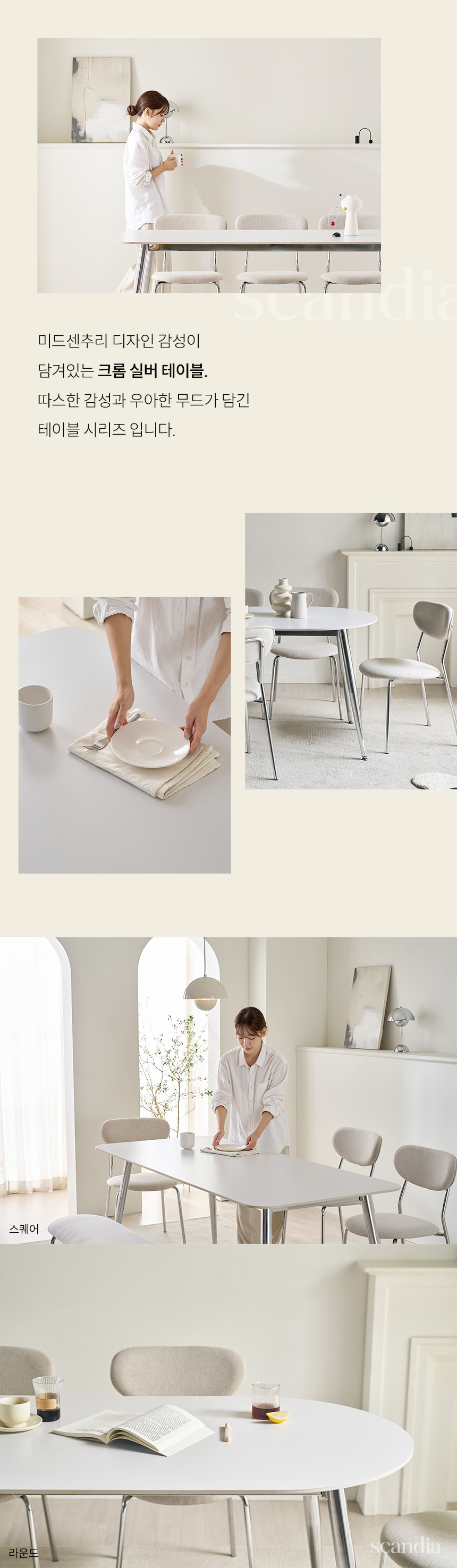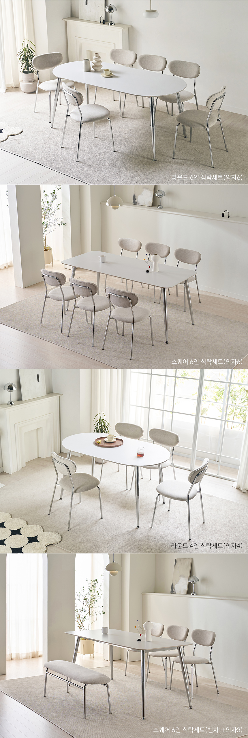 스칸디아 비에타 크롬 통세라믹 라운드/스퀘어 4&6인 식탁 세트
