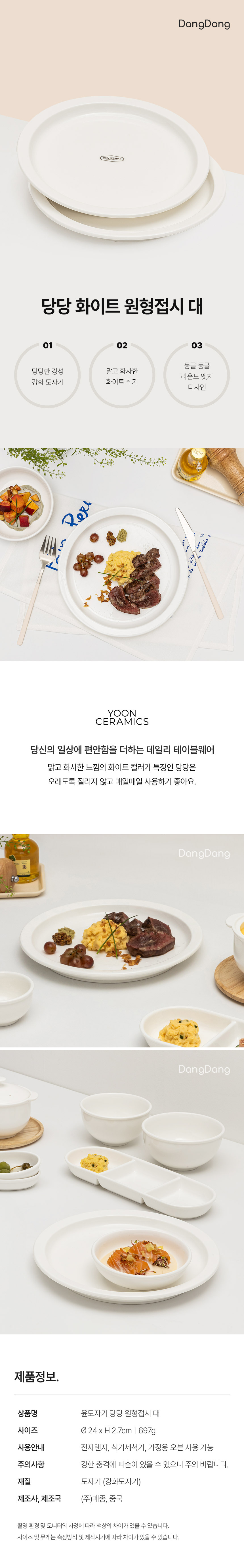 윤도자기 당당 화이트 원형접시 대
