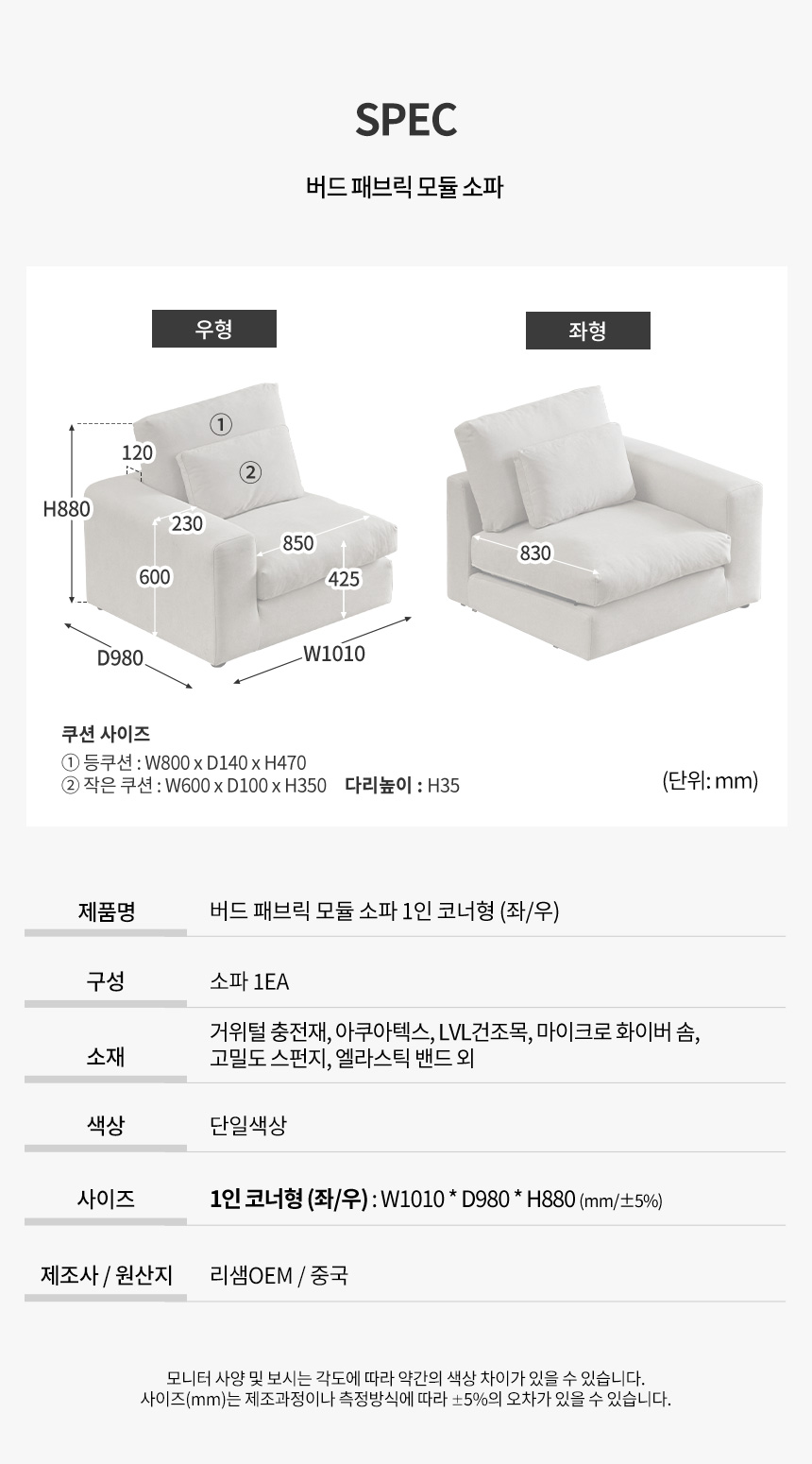 파로마 버드 구스 아쿠아텍스 패브릭 모듈 소파 코너형 (좌우선택)