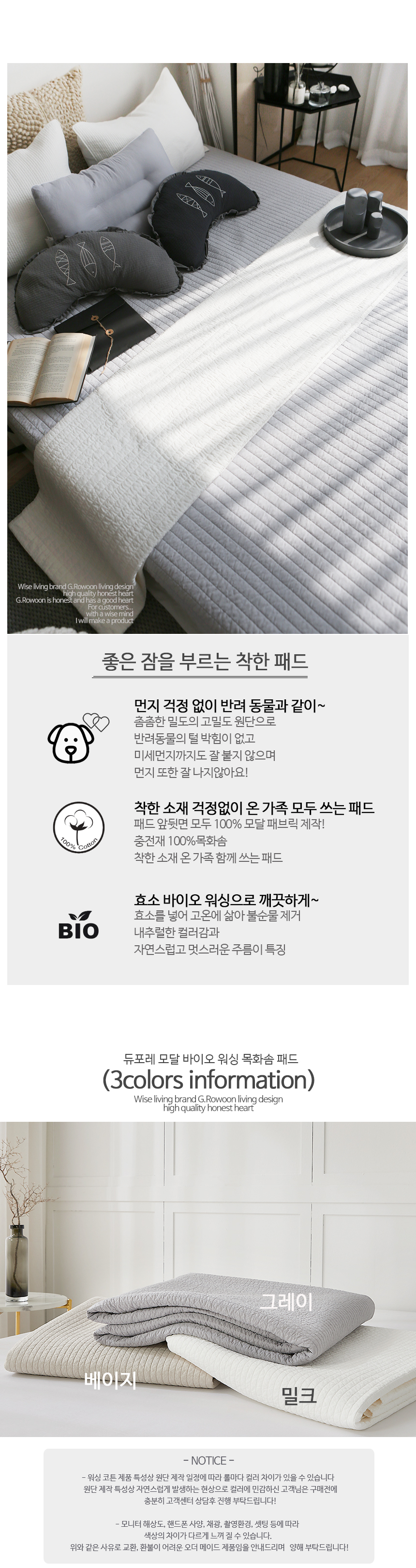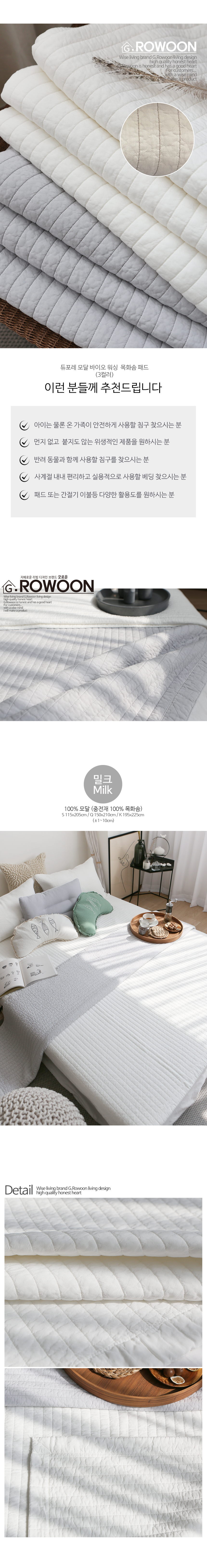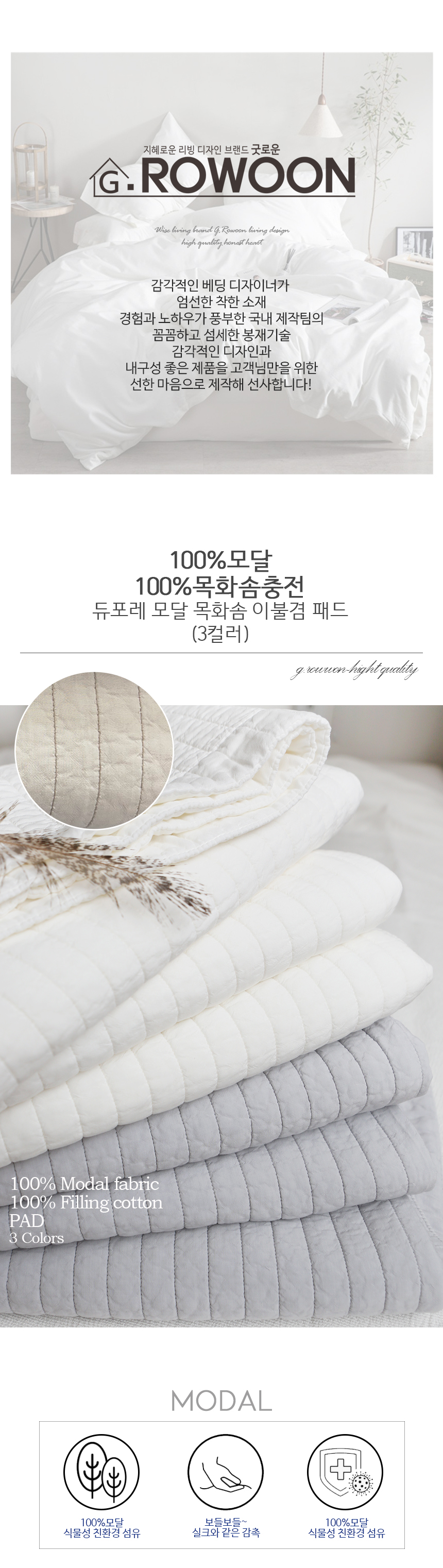 [ 100% 모달 / 친화경 목화솜 충전 / 바이오워싱 / S Q K 사이즈 / 3컬러 / 온가족 쓰는 사계절 패드 / 뛰어난 내구성 오래쓰는 패드 / 패드 이불 다용도 활용]