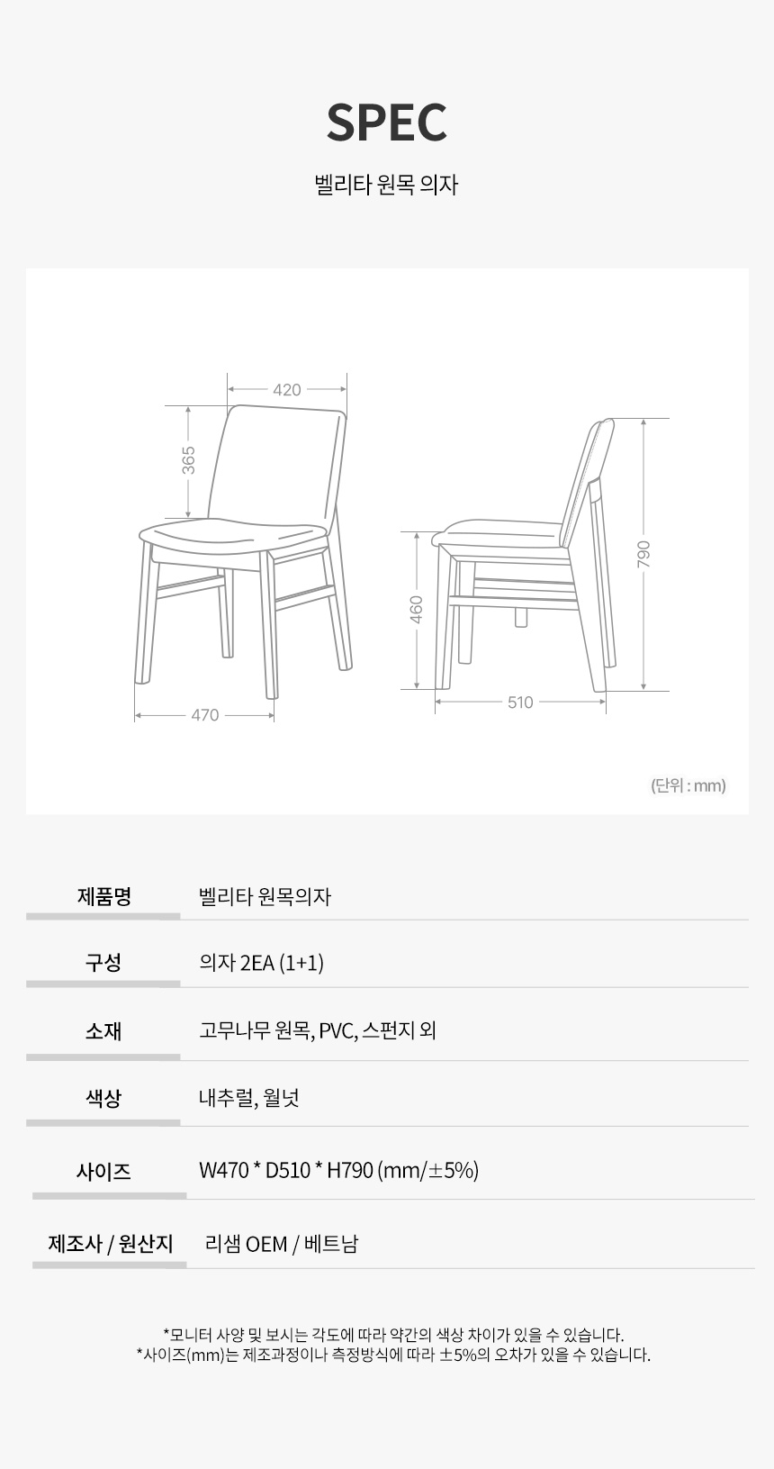 파로마 벨리타 카페의자 식탁 원목의자 1+1