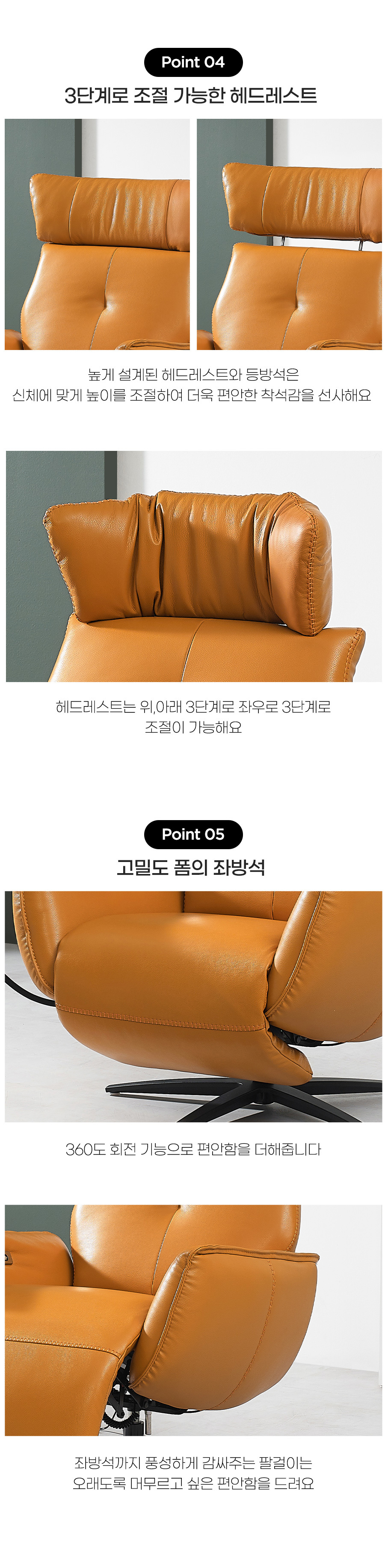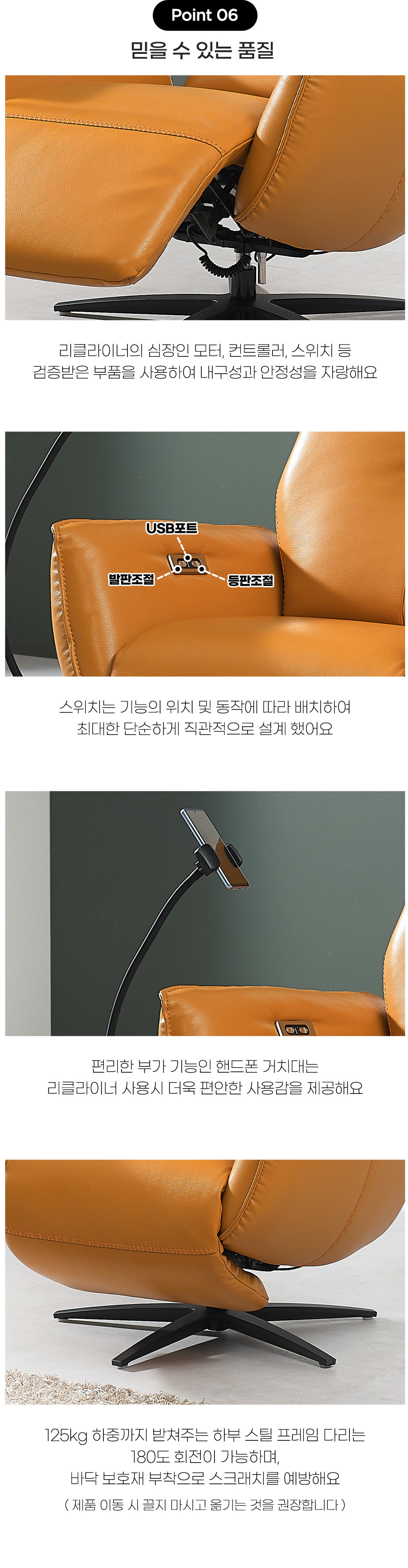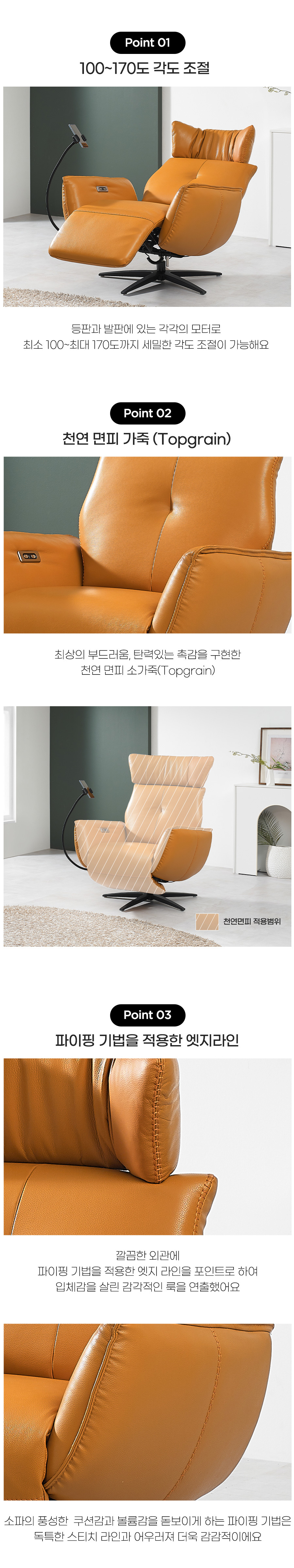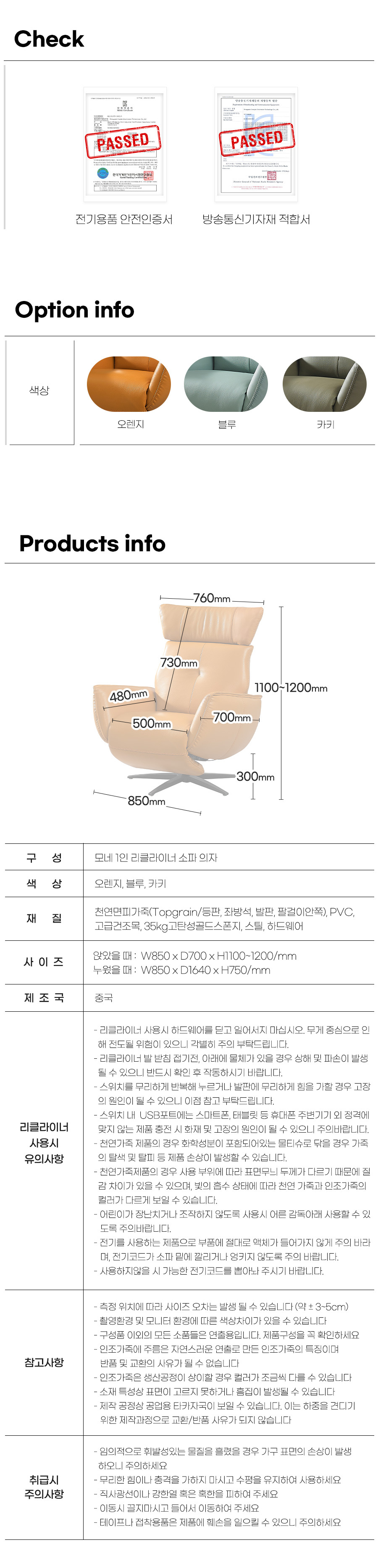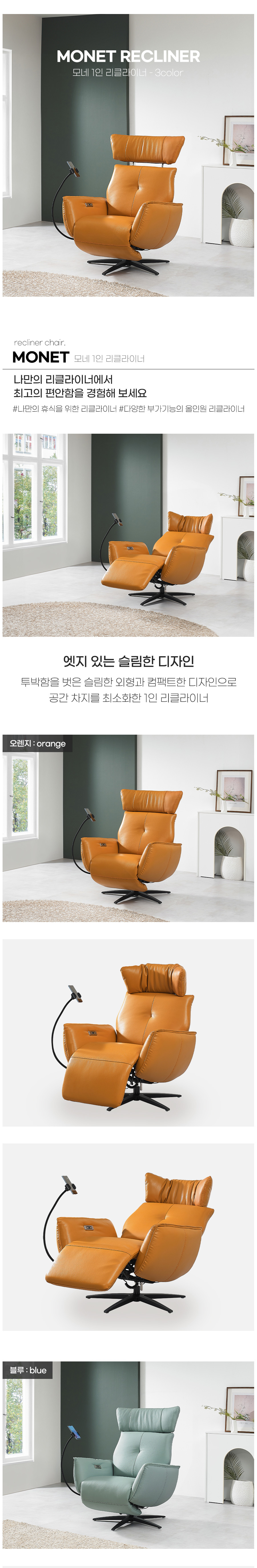 모네 천연면피 전동 리클라이너 스마트폰거치 USB포트 1인용 소파의자 - 3color