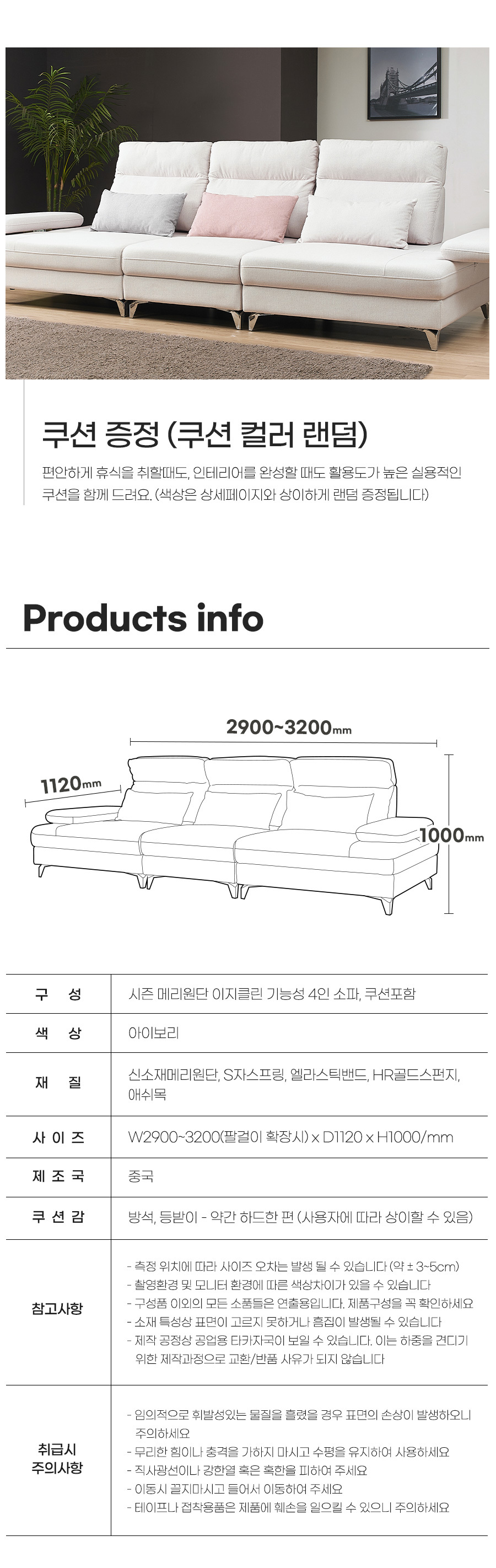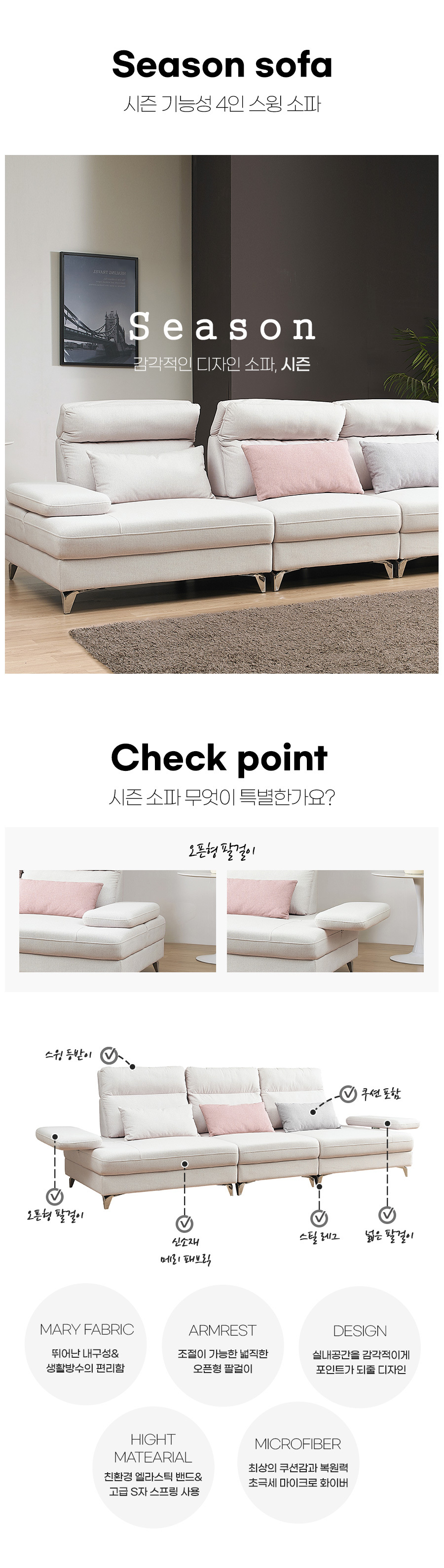 시즌 신소재 메리원단 이지클린 스윙 4인 등받이조절 소파 (쿠션포함)